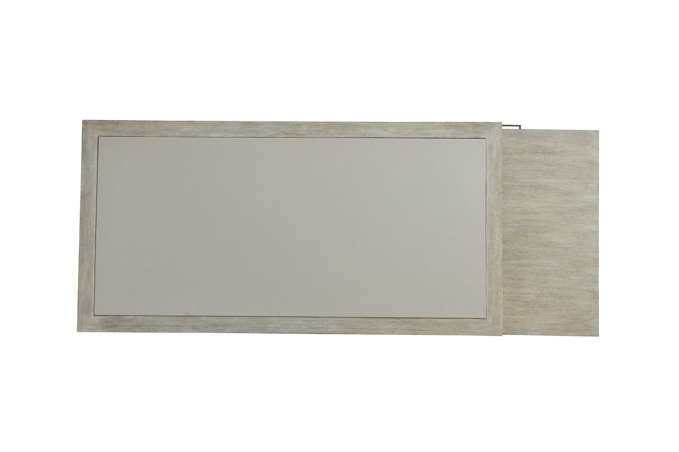 - Contemporary design featuring quartered oak veneers in a sandblasted and wire-brushed light gray finish.