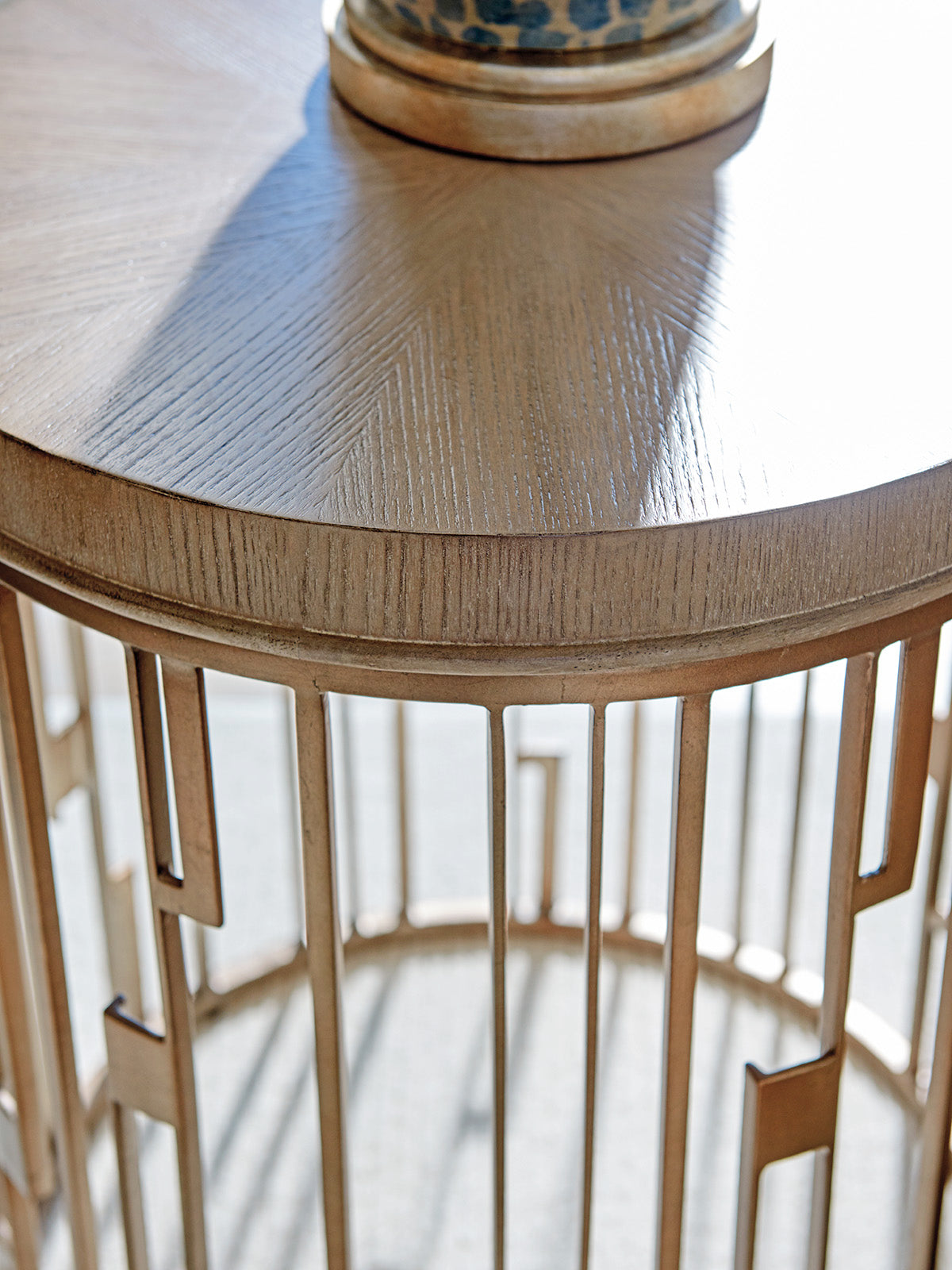 - Elegant burnished silver leaf base with intricate hand-crafted metalwork.