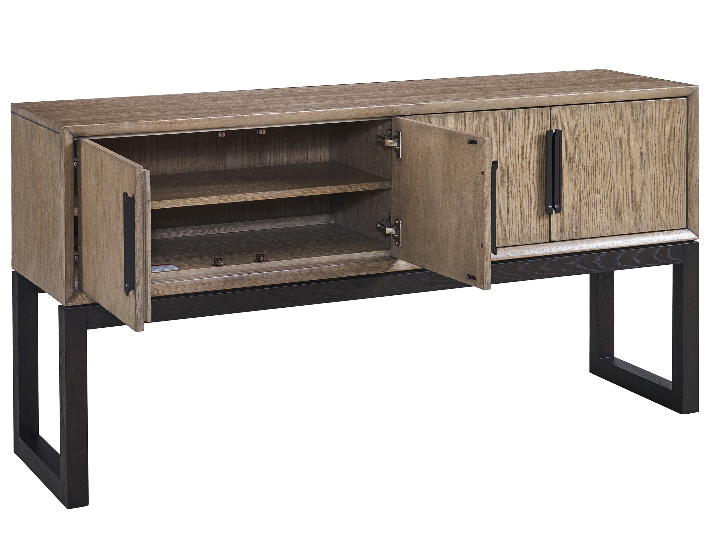 Transform your living space with the Tavola Sideboard, a perfect blend of functionality and modern design. This stylish storage solution not only serves as a practical piece for your home but also enhances your decor with its sophisticated aesthetic. Crafted from high-quality quartered white oak, the sideboard showcases a warm taupe finish complemented by deep espresso accents. Its gently wire-brushed surface highlights the natural beauty of the wood, while custom dark umber hardware adds an elegant touch. With its clean lines and thoughtful design, the Tavola Sideboard seamlessly fits into contemporary interiors, making it both an inviting and dramatic addition to your home.