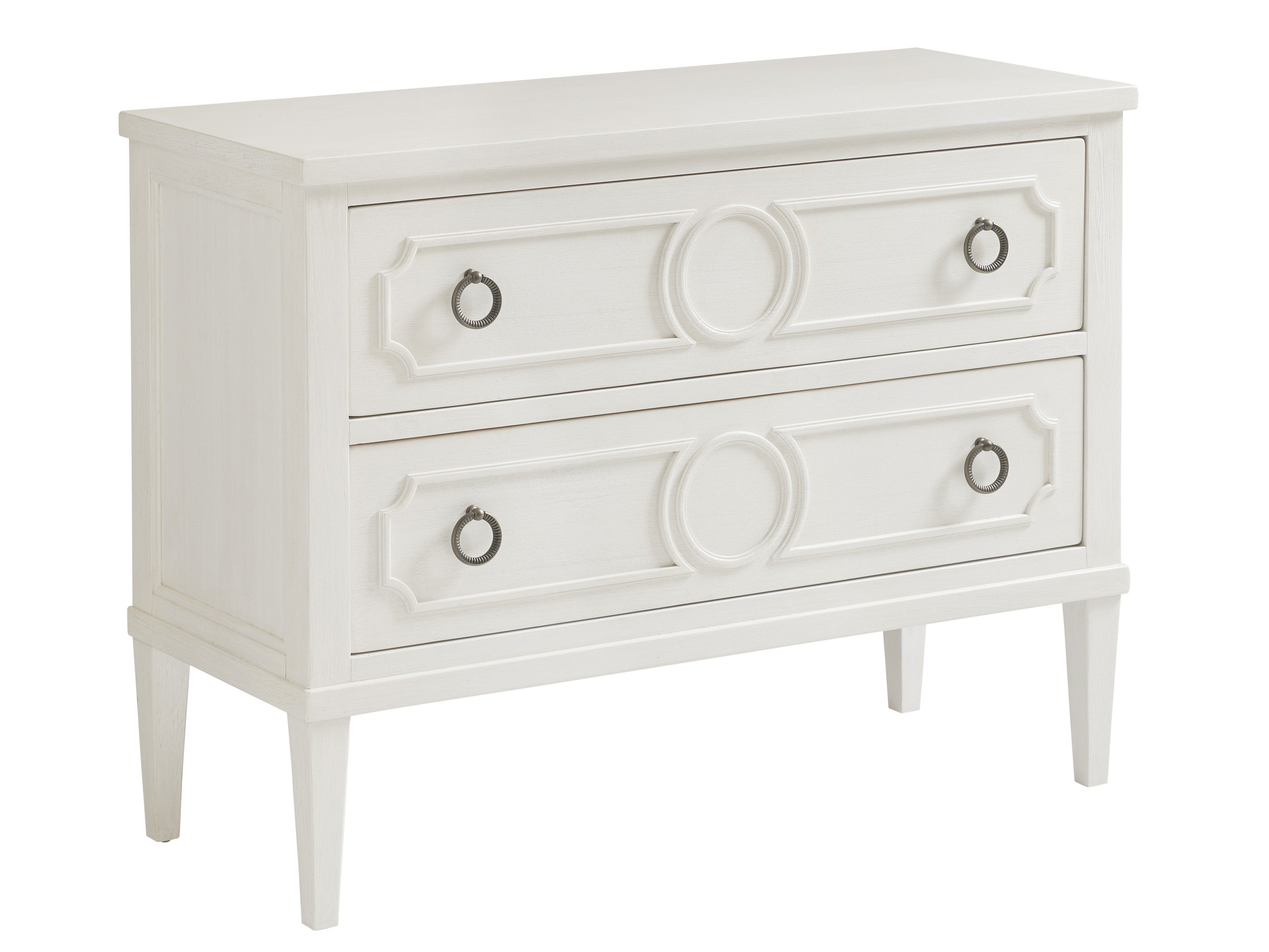 Experience the essence of coastal elegance with the Brantley Bachelor's Chest, a stunning piece that seamlessly blends transitional design with the relaxed charm of beachside living. Finished in a serene shell white, this chest showcases the beauty of quartered mahogany, enhanced by a variety of natural materials that add depth and texture. Each element, from the leather-wrapped rattan to the woven raffia, speaks to a commitment to authenticity and craftsmanship. This bachelor’s chest is not only a functional storage solution but also a statement piece that elevates your master suite with its sophisticated yet casual vibe.