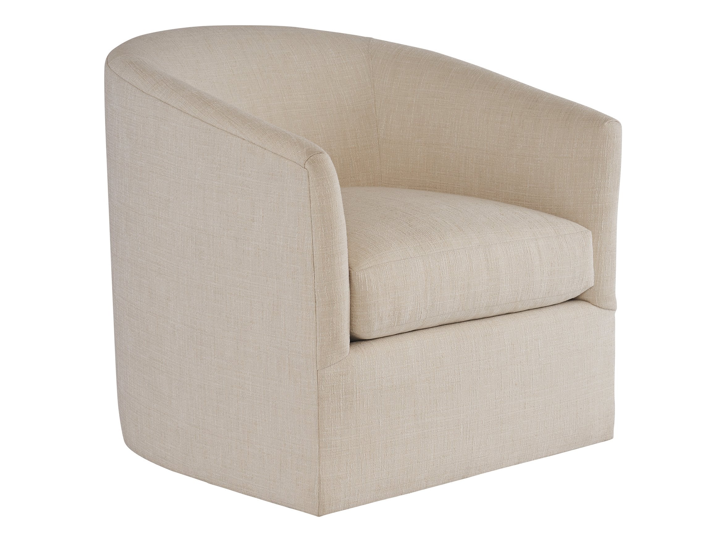 Experience the perfect blend of contemporary design and comfort with the Candice Swivel Chair. This elegantly crafted piece embodies the essence of relaxed resort living, featuring clean architectural lines and a sophisticated raised panel design that infuses any space with a sense of tranquility and style. The white oak surfaces are meticulously wire-brushed to emphasize the beautiful grain patterns and are finished in a light Sand Drift coloration, making it a stunning addition to your home. With accent materials such as ultra-clear wavy glass, honed travertine, and brushed champagne metal elements, this chair not only provides comfort but also enhances your decor with its modern aesthetic.
