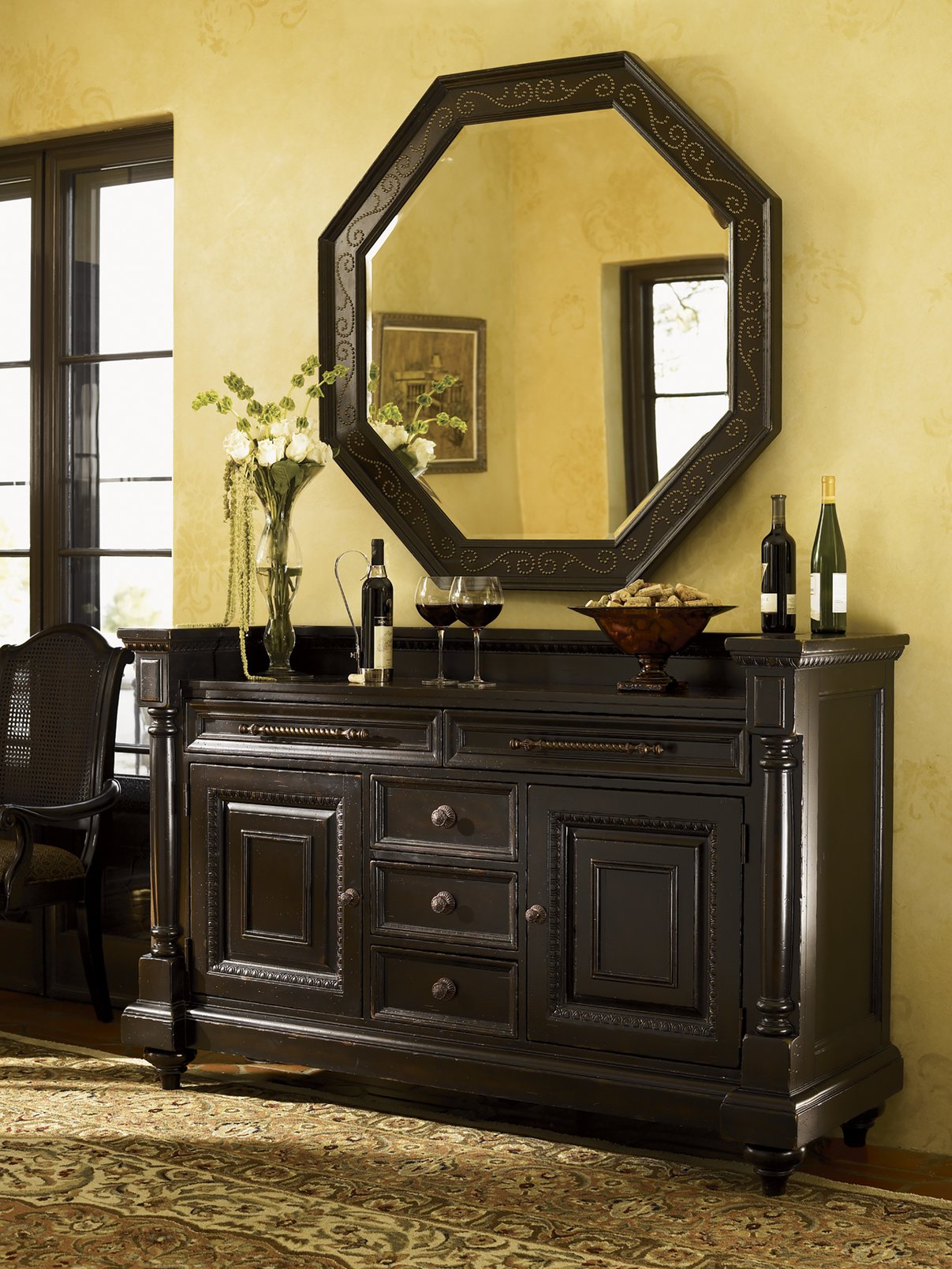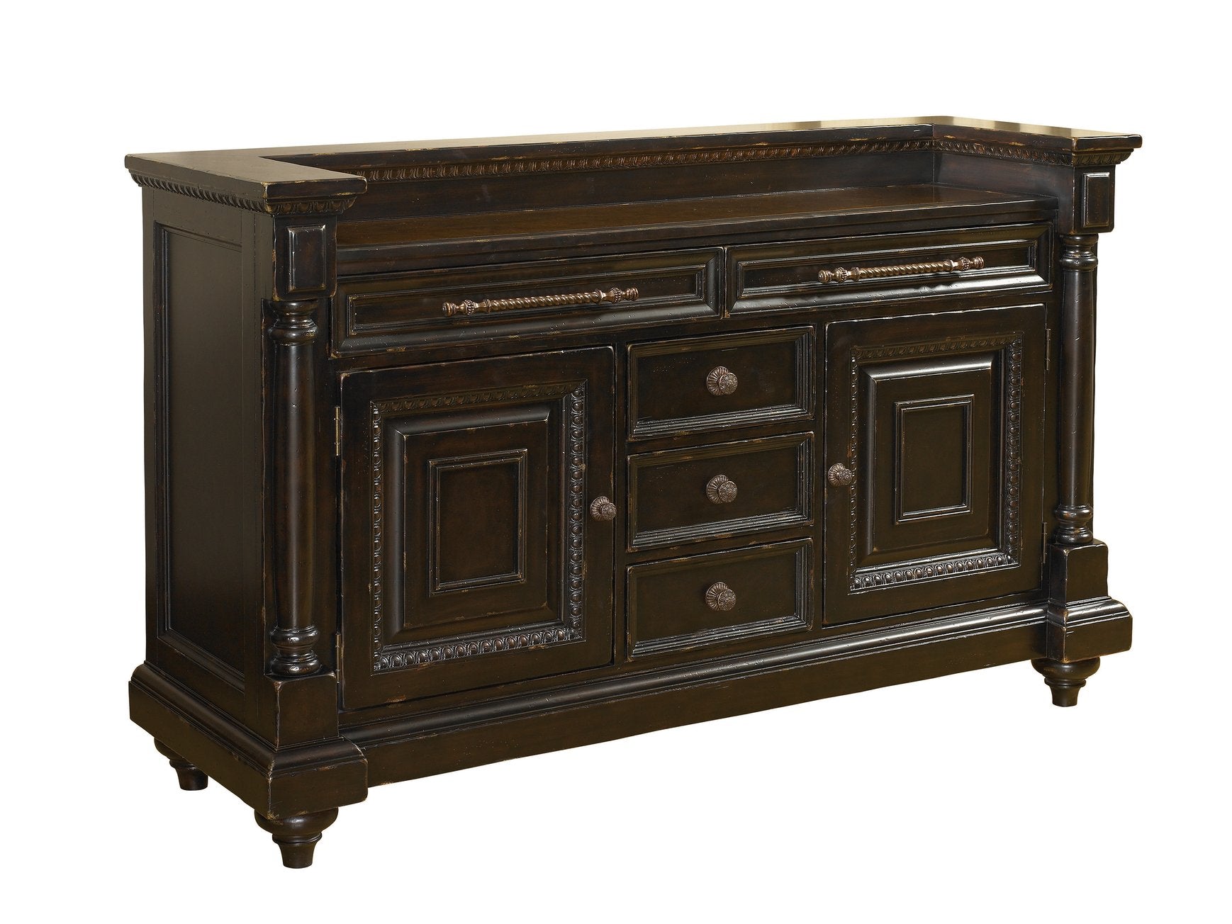 Immerse yourself in the timeless sophistication of British Colonial design with the Maldive Buffet. This exquisite piece from Tommy Bahama Home captures the spirit of a globe-trotting lifestyle, blending traditional craftsmanship with contemporary functionality. The buffet features a stunning Tamarind finish that, while appearing deep black at first glance, reveals subtle hints of gold and crimson as light dances across its surface. Accented with hammered copper and enriched with leather-clad details, the Maldive Buffet is a statement of elegance and adventure that enhances any dining or living space.