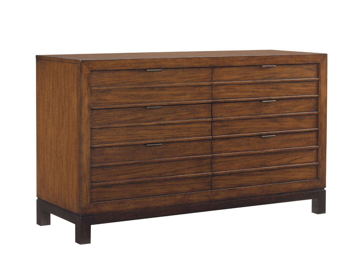- Elegant easy-access tab pulls that seamlessly integrate with the dresser's sleek horizontal lines.