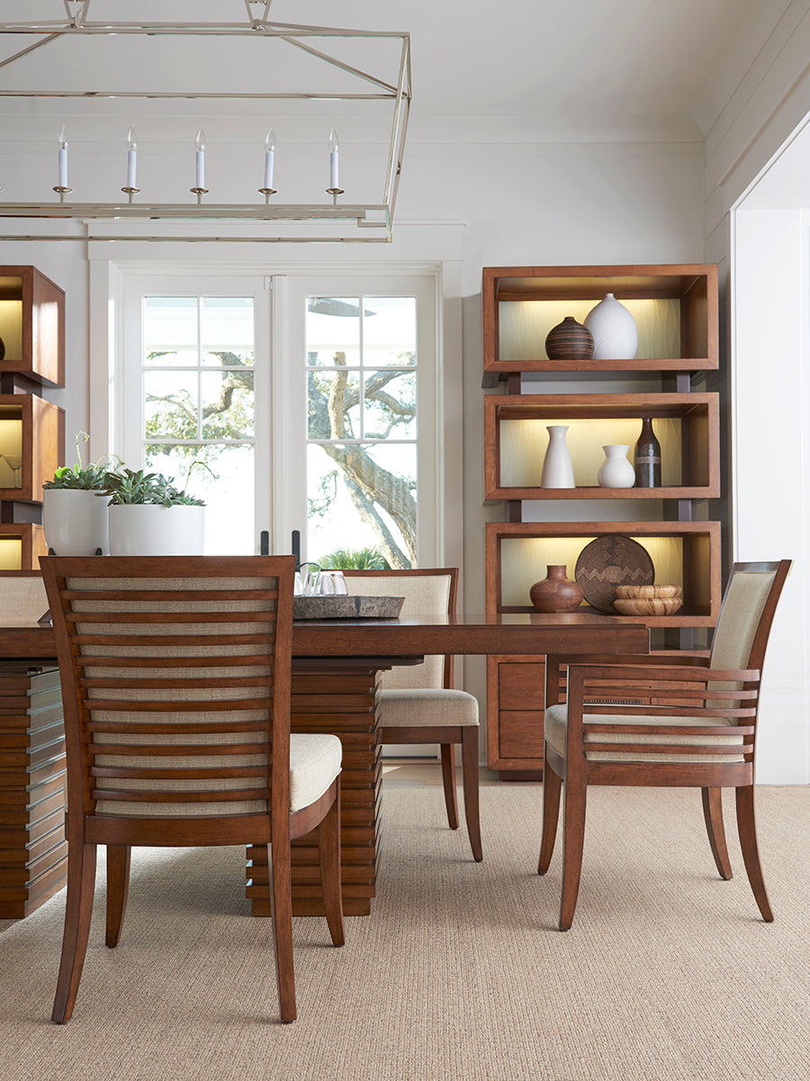 - Features two sturdy pedestals with horizontal slats, enhancing stability and style
