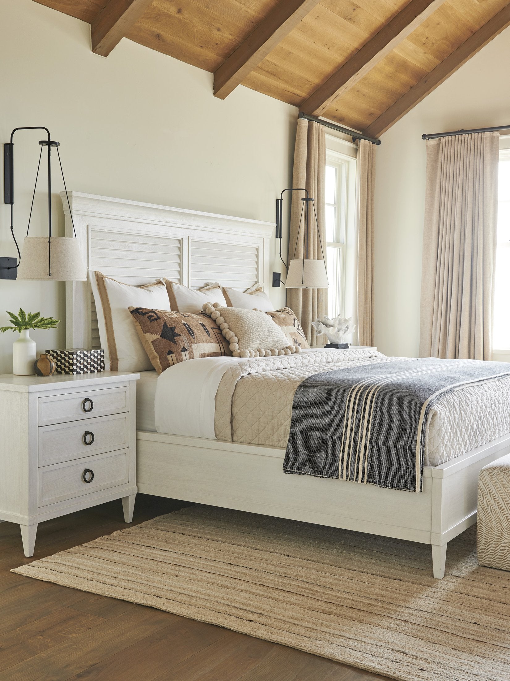 Transform your bedroom into a sanctuary of refined coastal living with the Royal Palm Louvered Bed, where timeless design meets modern comfort.