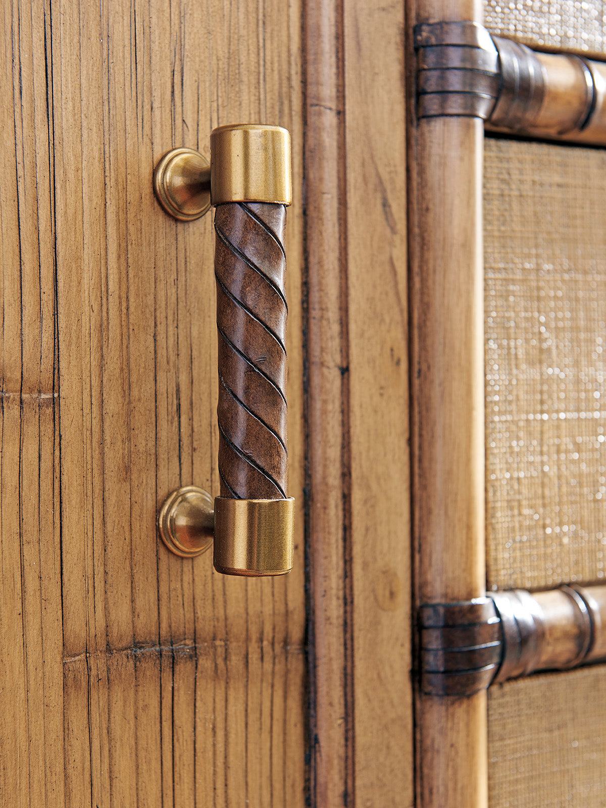 - Stylish leather-wrapped bamboo carved moldings enhance the overall aesthetic and durability.