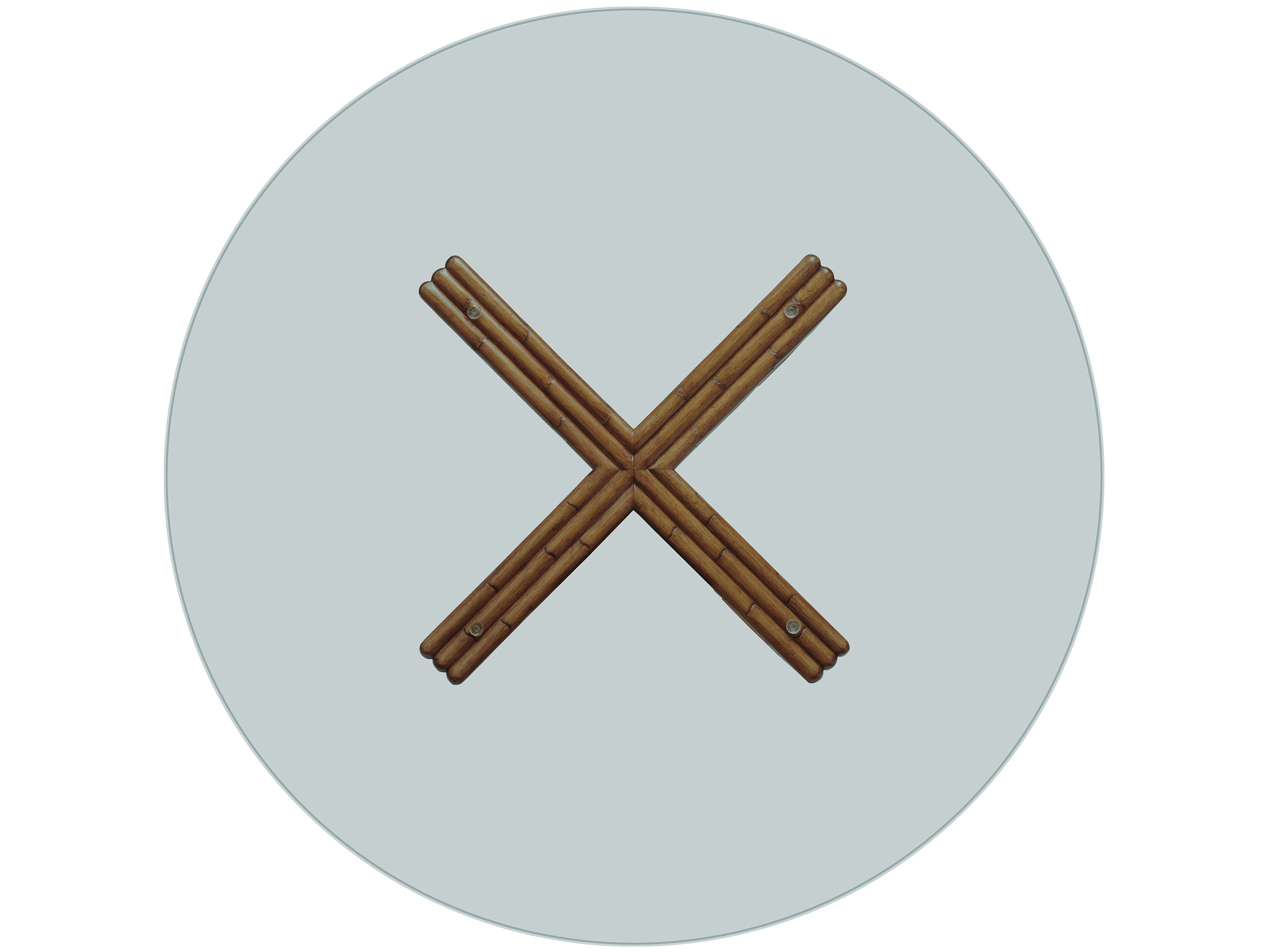 - Glass top specifications: 48-inch diameter, 0.75-inch thickness, and 1-inch bevel