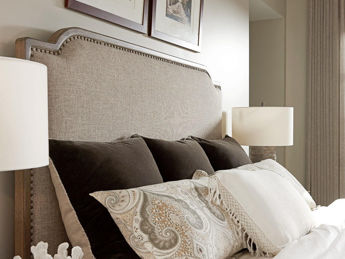 - Upholstered headboard, footboard, and side rails designed for both comfort and style.