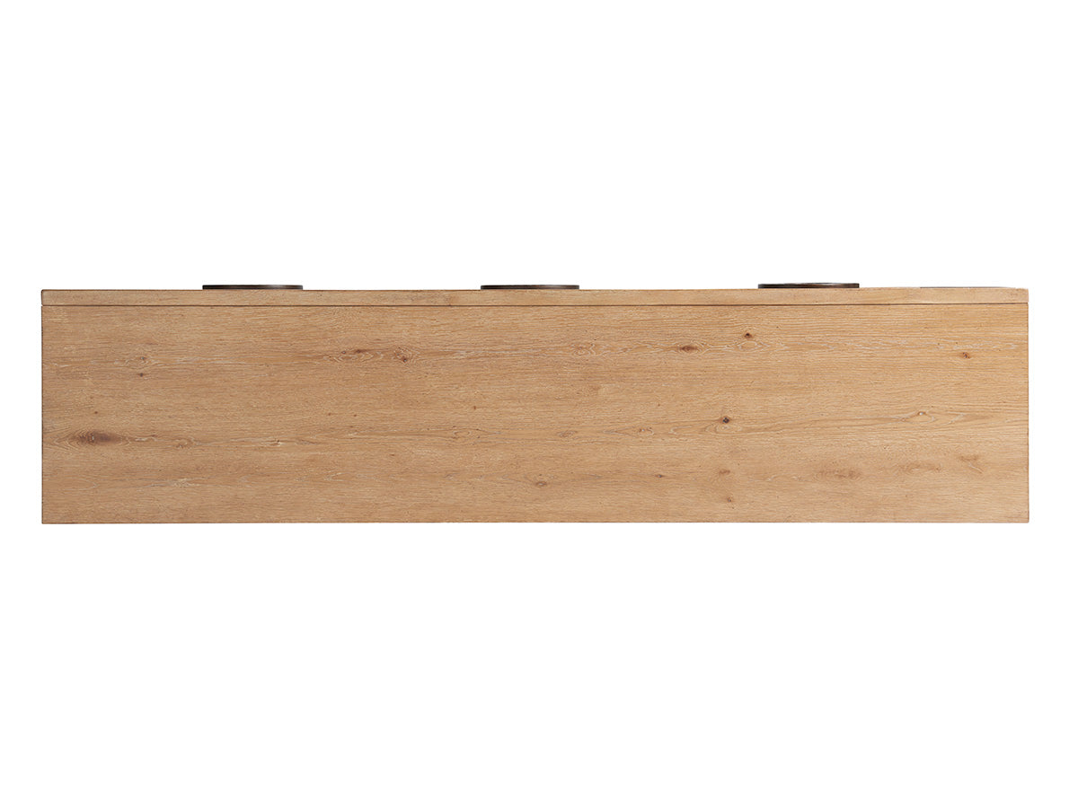 - Finished in a semi-transparent natural oak stain, hand-rubbed with a linen-white glaze for added sophistication
