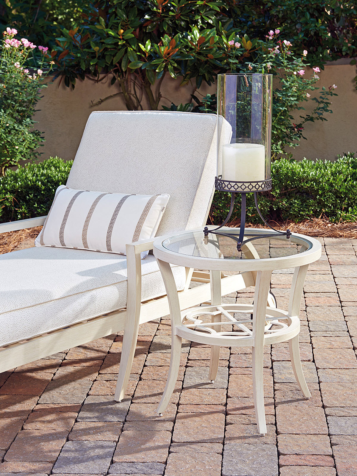 - Chic glass top provides a sleek surface for drinks and decor while allowing the intricate design below to shine.