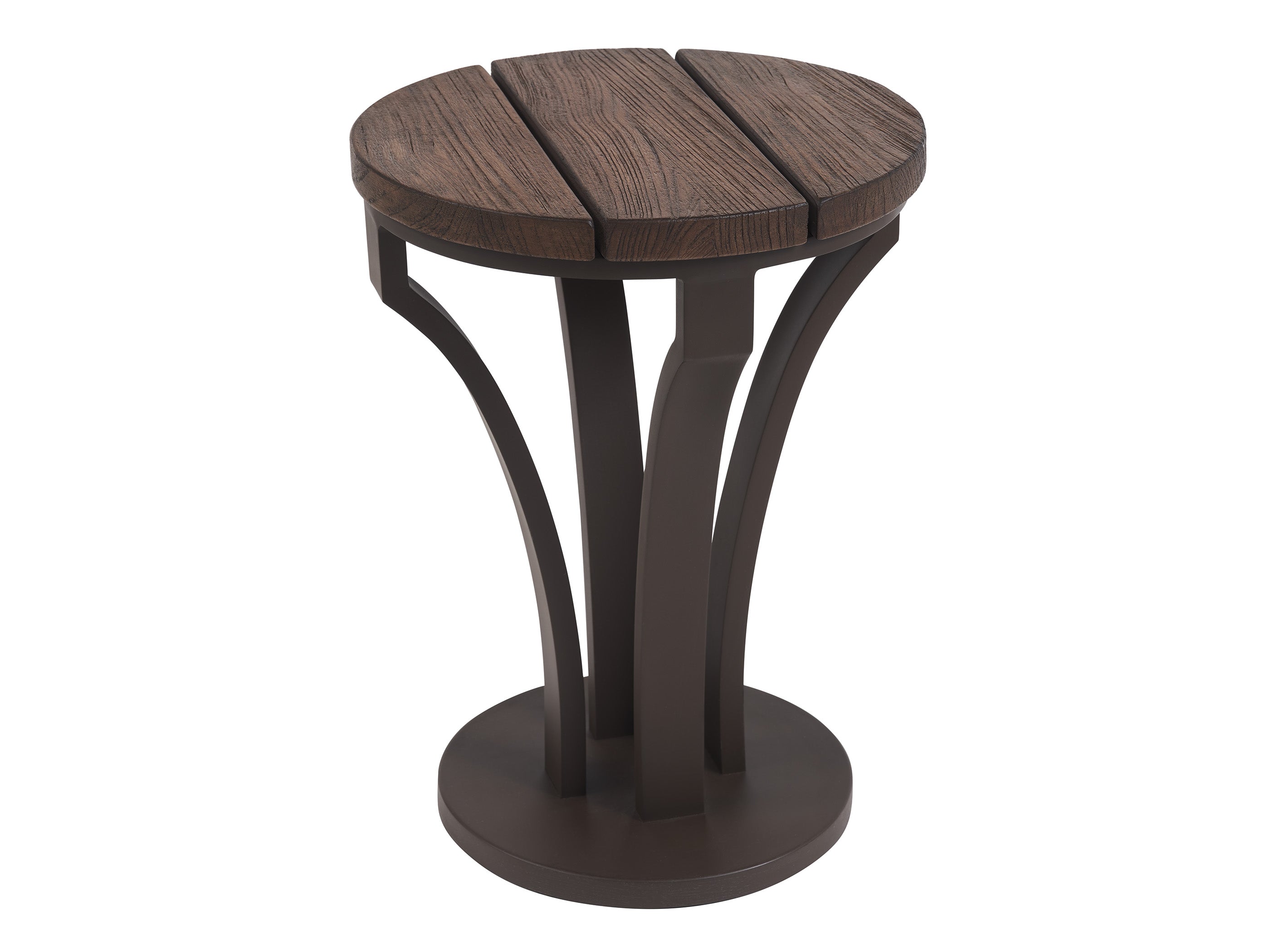 - Flared aluminum base designed for stability, coated in a weather-resistant deep espresso finish