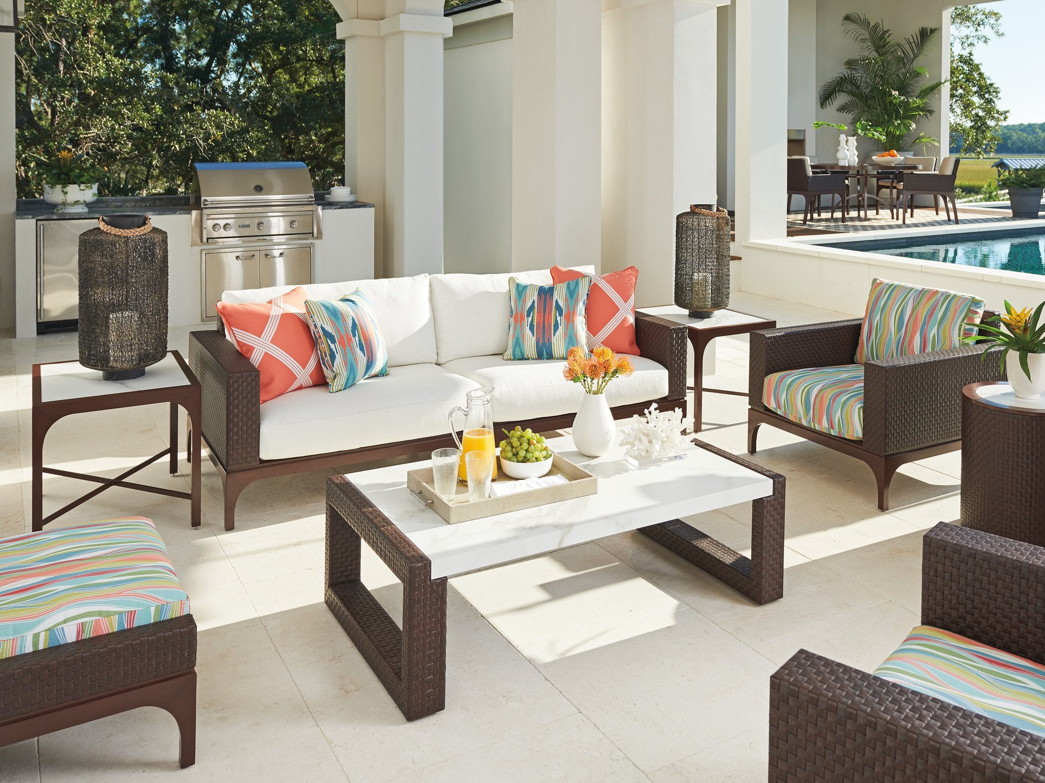 - Part of the extensive 28-piece Abaco collection, offering a cohesive look for outdoor spaces with options for dining, seating, and accent tables