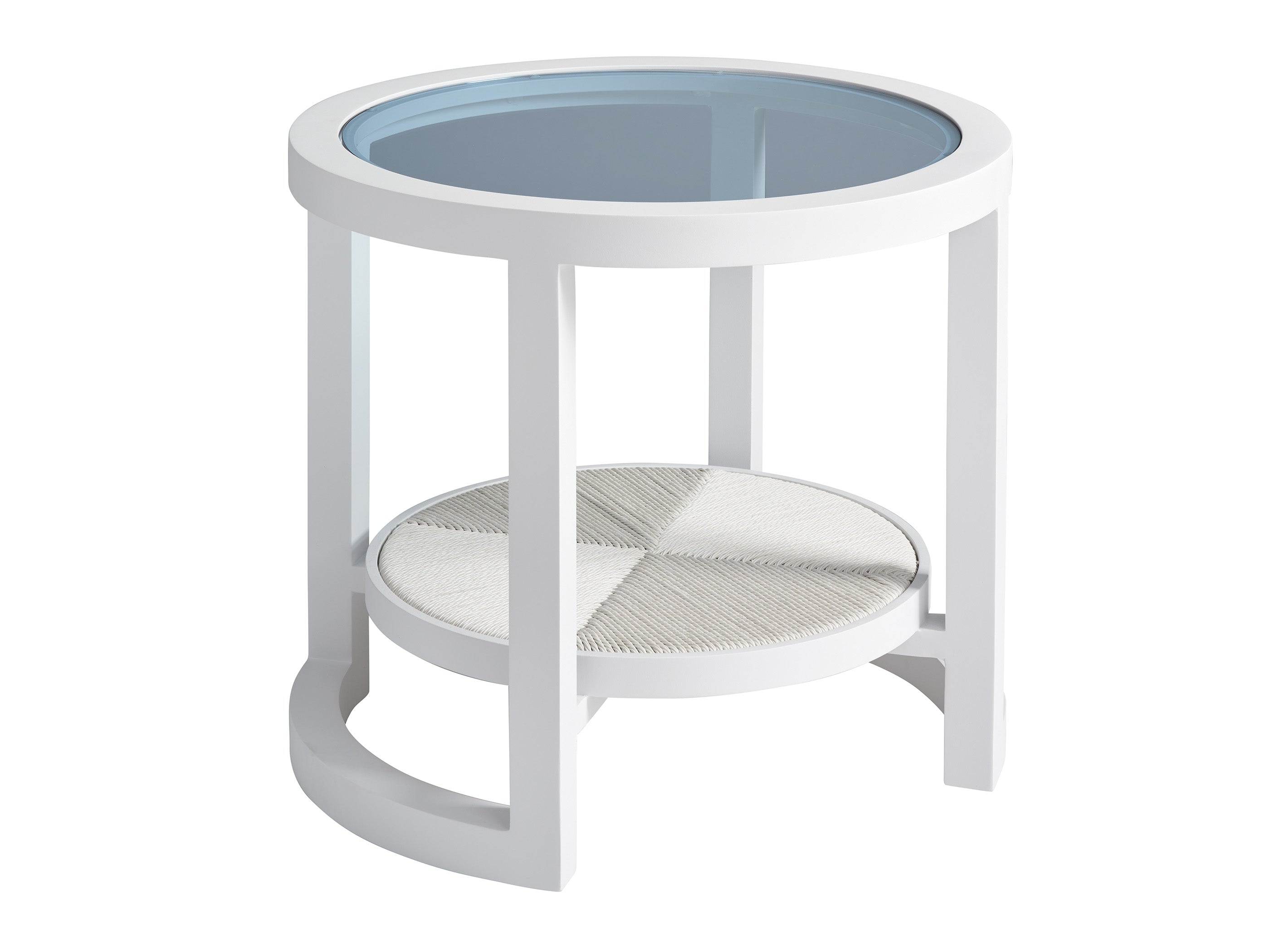 - Inset tempered glass top in a soft marine blue, adding a touch of tranquility.