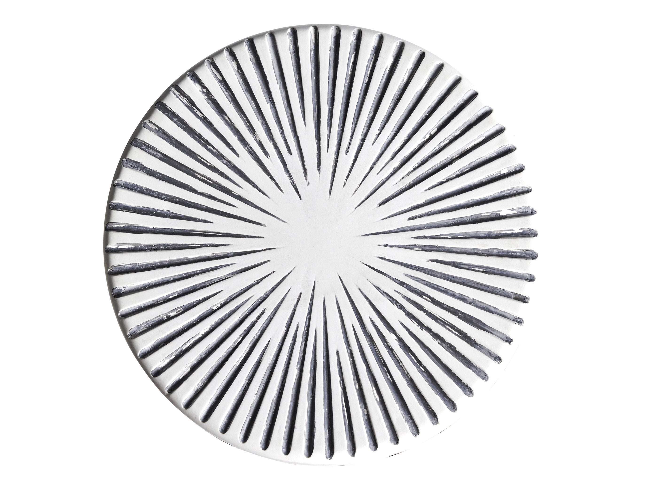 - Hand-painted sunburst design in soft gray for added visual interest