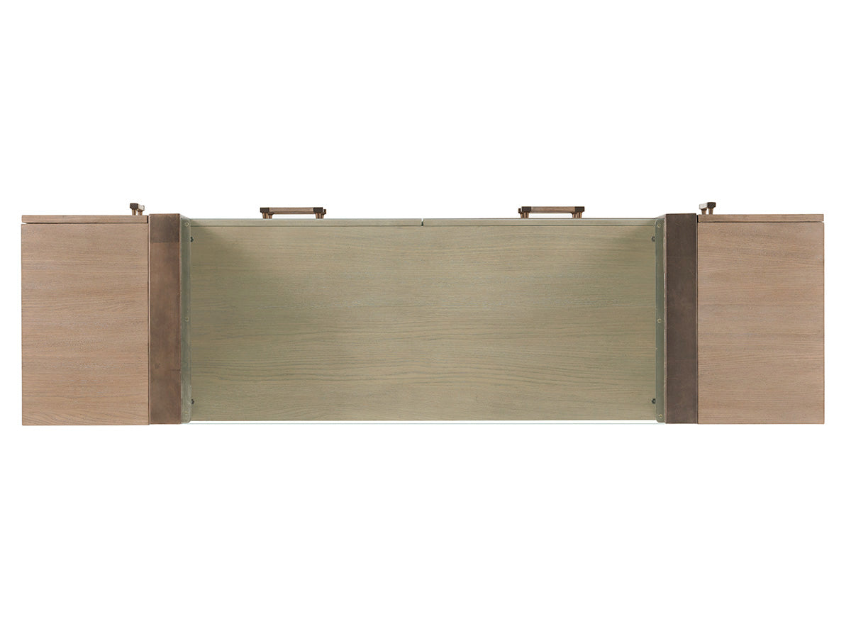 Discover the perfect blend of sophistication and casual elegance with the Turnberry Media Console. Designed to meet the needs of modern living, this stunning piece showcases a contemporary aesthetic while providing ample storage solutions. The console features a relaxed taupe-gray finish, making it a versatile addition to any living space. Its urban edge appeal is highlighted by hand-forged metal accents in burnished silver leaf, offering a striking contrast to the soft, textured fabrics of the custom upholstery. Whether you're hosting a gathering or enjoying a cozy night in, the Turnberry Media Console brings both style and functionality to your home.