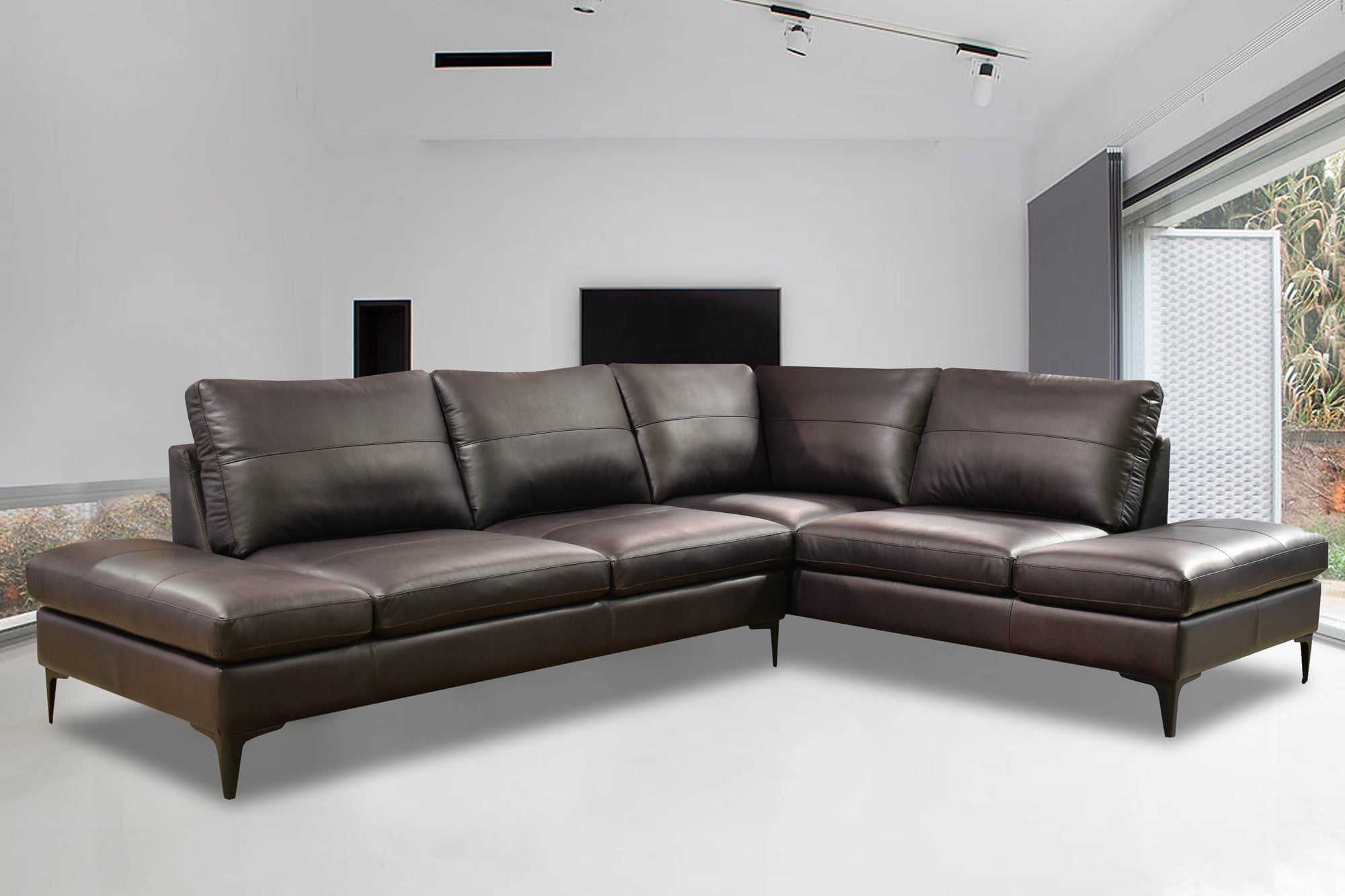 - Additional Dimensions WDH":: Sofa Seat: 97 x 23 x 19; Chaise Seat: 23 x 72 x 19; Floor to top back frame: 28; Leg height: 6.5; Base Height (floor to underneath the cushion seat): 12.5; Overall Chaise: 38 x 87 x 34; Overall Sofa (w/o chaise): 74 x 38 x 34;