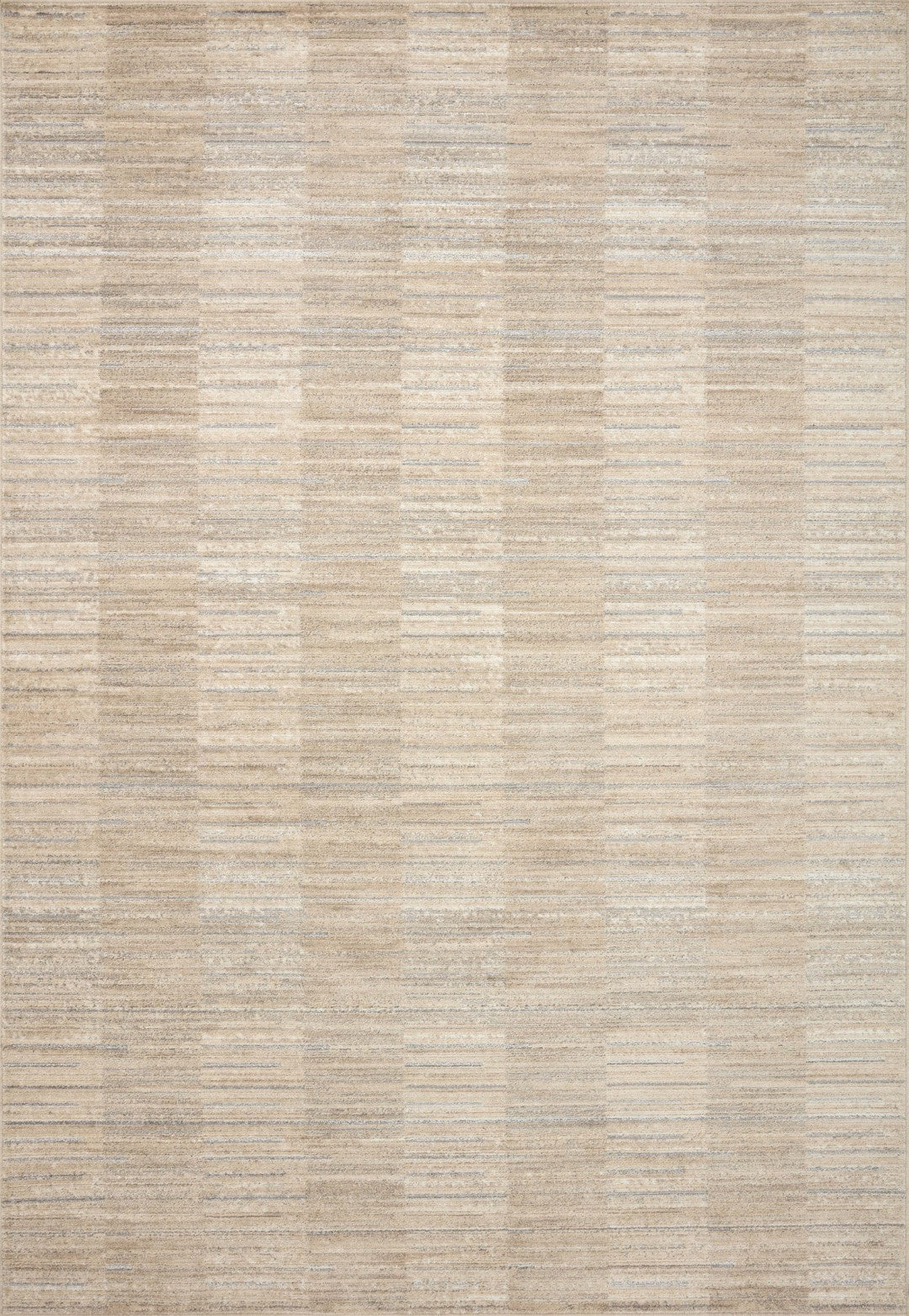 The wide, heathered stripes of the Arden Collection give this neutral area rug an elevated look and feel. It is power-loomed with yarns that are intently shrunk, like one would find in pre-shrunk clothing, at different levels to create a subtle ribbing effect. Made of polyester and polypropylene in Egypt.