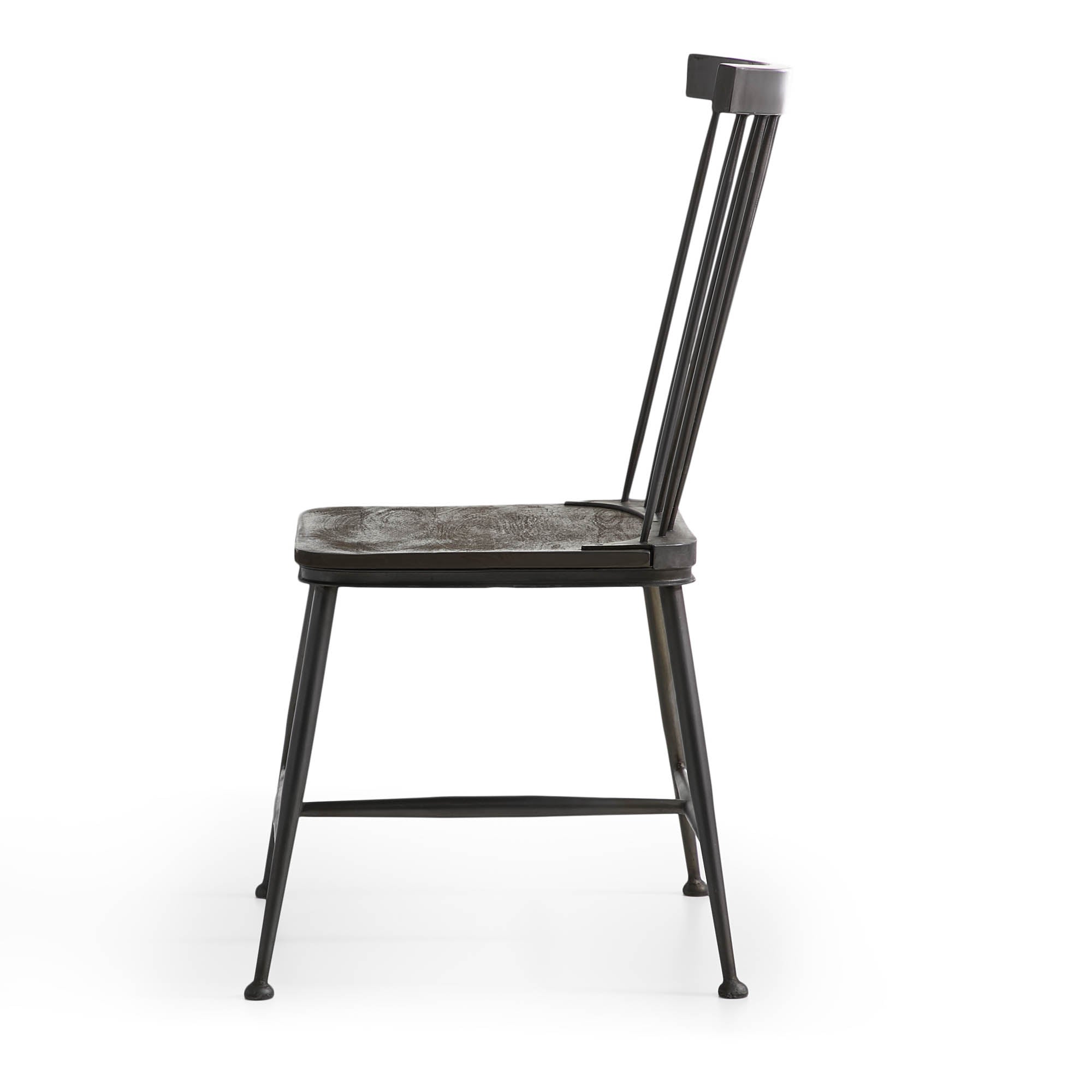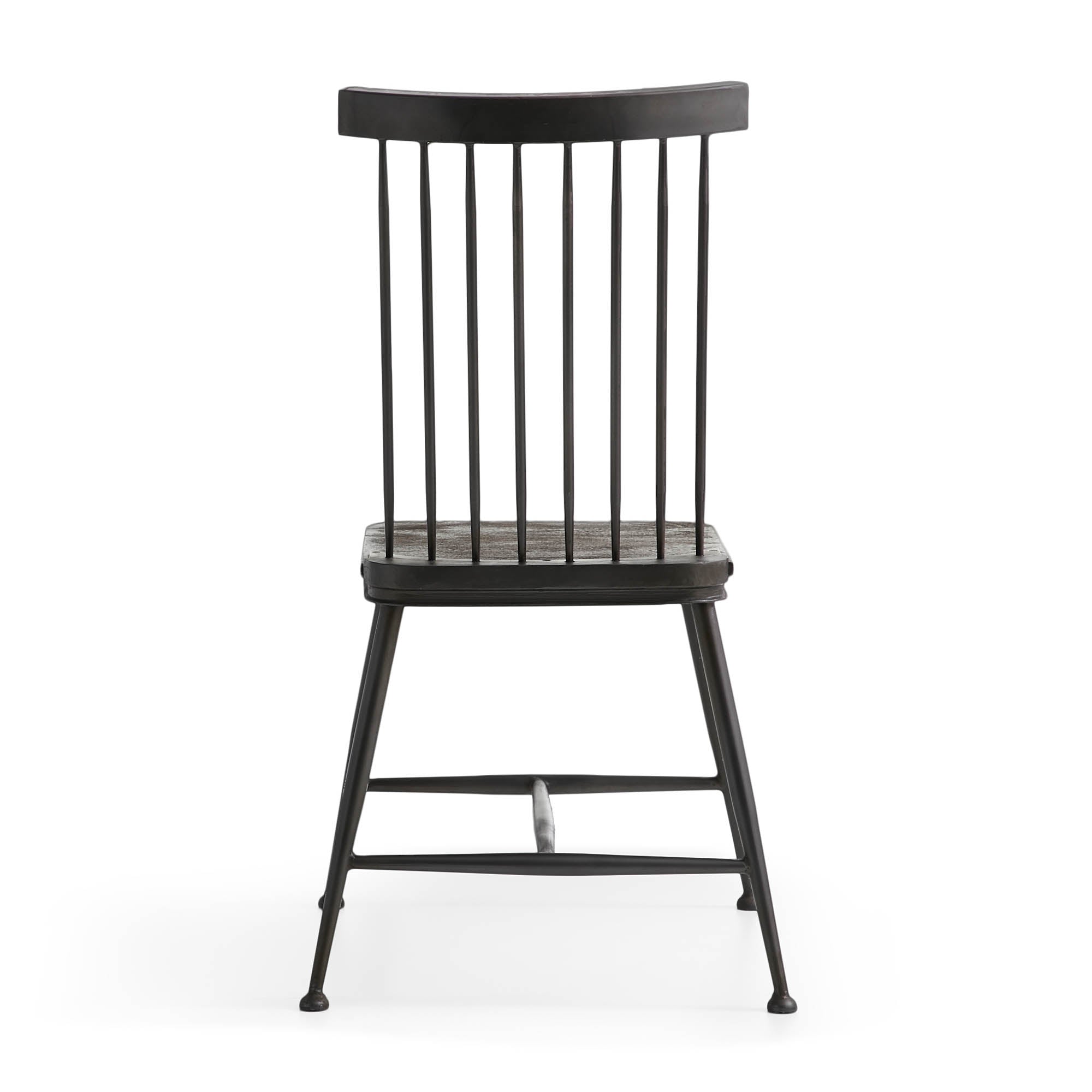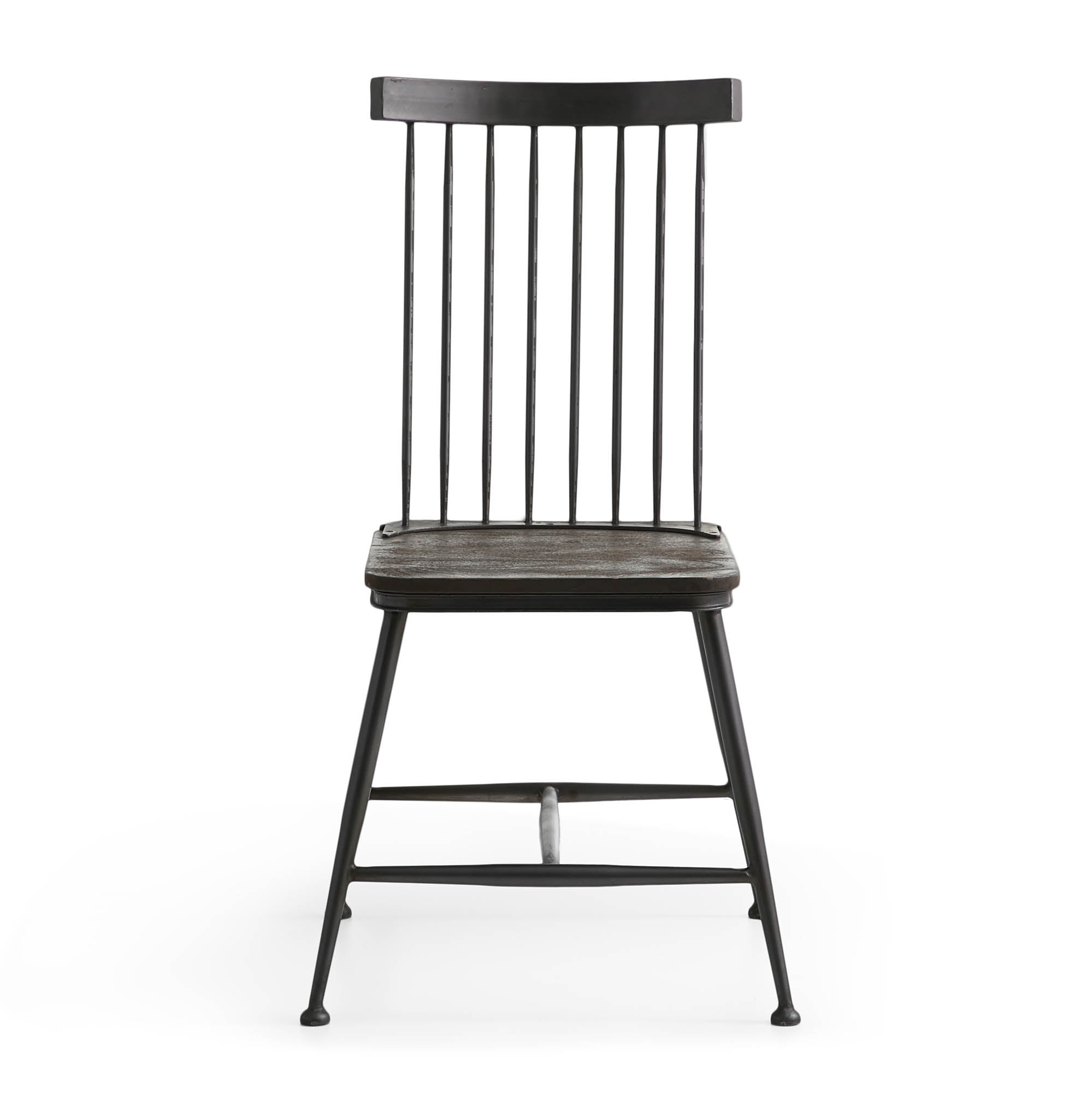 - Cradled wood seat and slender spindles are inspired by Windsor chairs