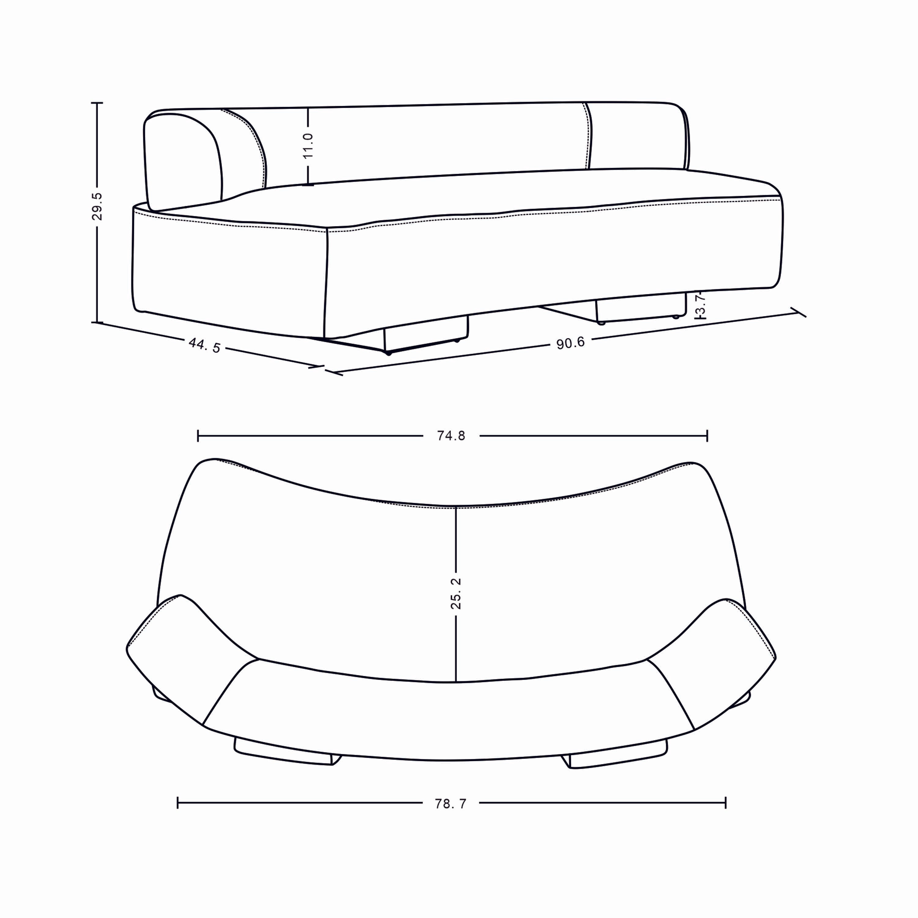 - XL Sofa Measure: 112.2L x 29.5H x 44.5D. Sofa Measure: 90.6L x 29.5H x 44.5D.