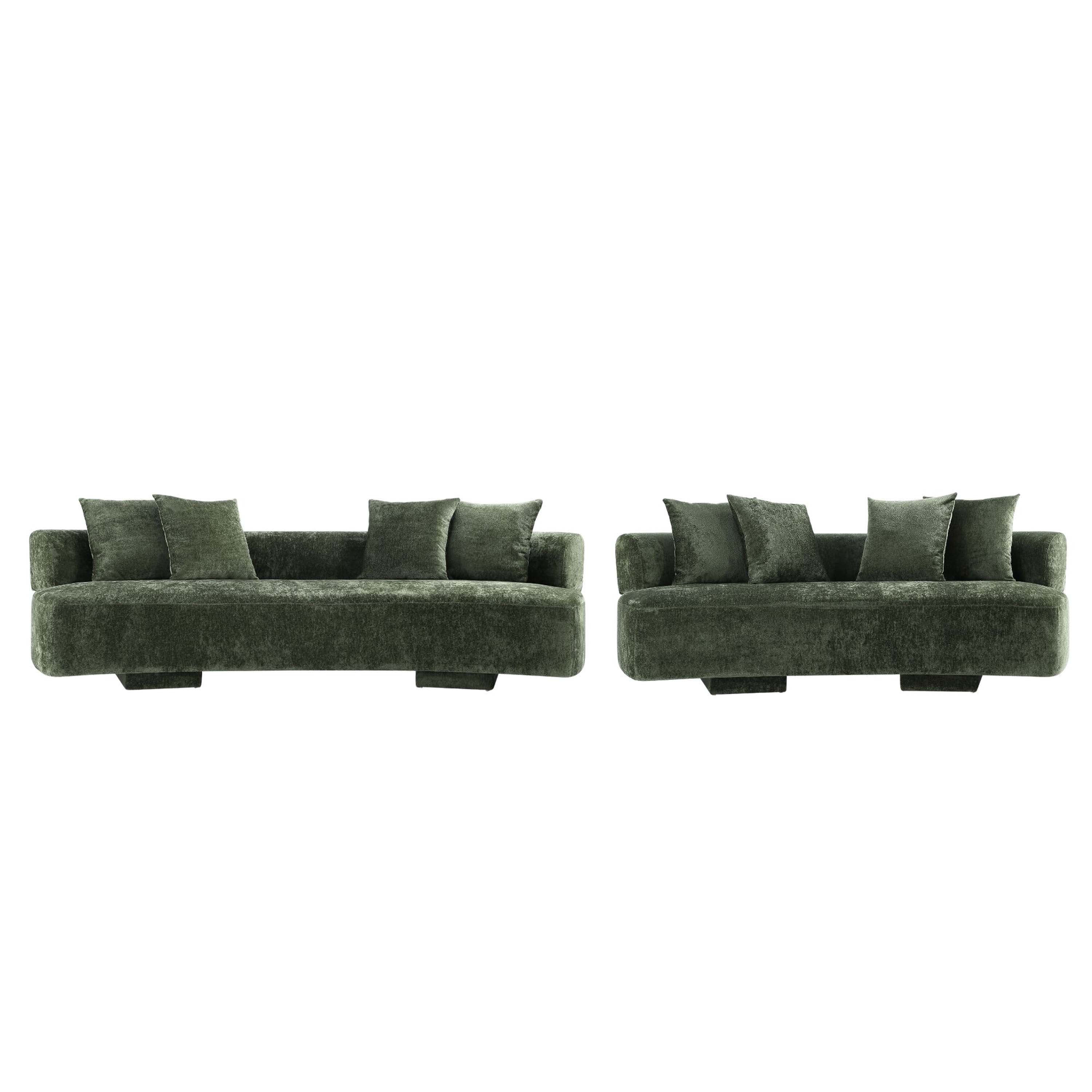 Step into luxury with the Verandah Collection, where every piece is a masterpiece of comfort and style. Upholstered in sumptuous chenille and boasting a distinctive rounded rectangular silhouette, each sofa, Sofa, and accent chair stands out as a testament to timeless elegance. Whether as striking standalone pieces or harmoniously arranged together, this collection elevates any living space with its blend of sophistication and inviting charm.- Mid-Century Modern Sofa and Sofa Perfect for Living Room Use. Set of 2.