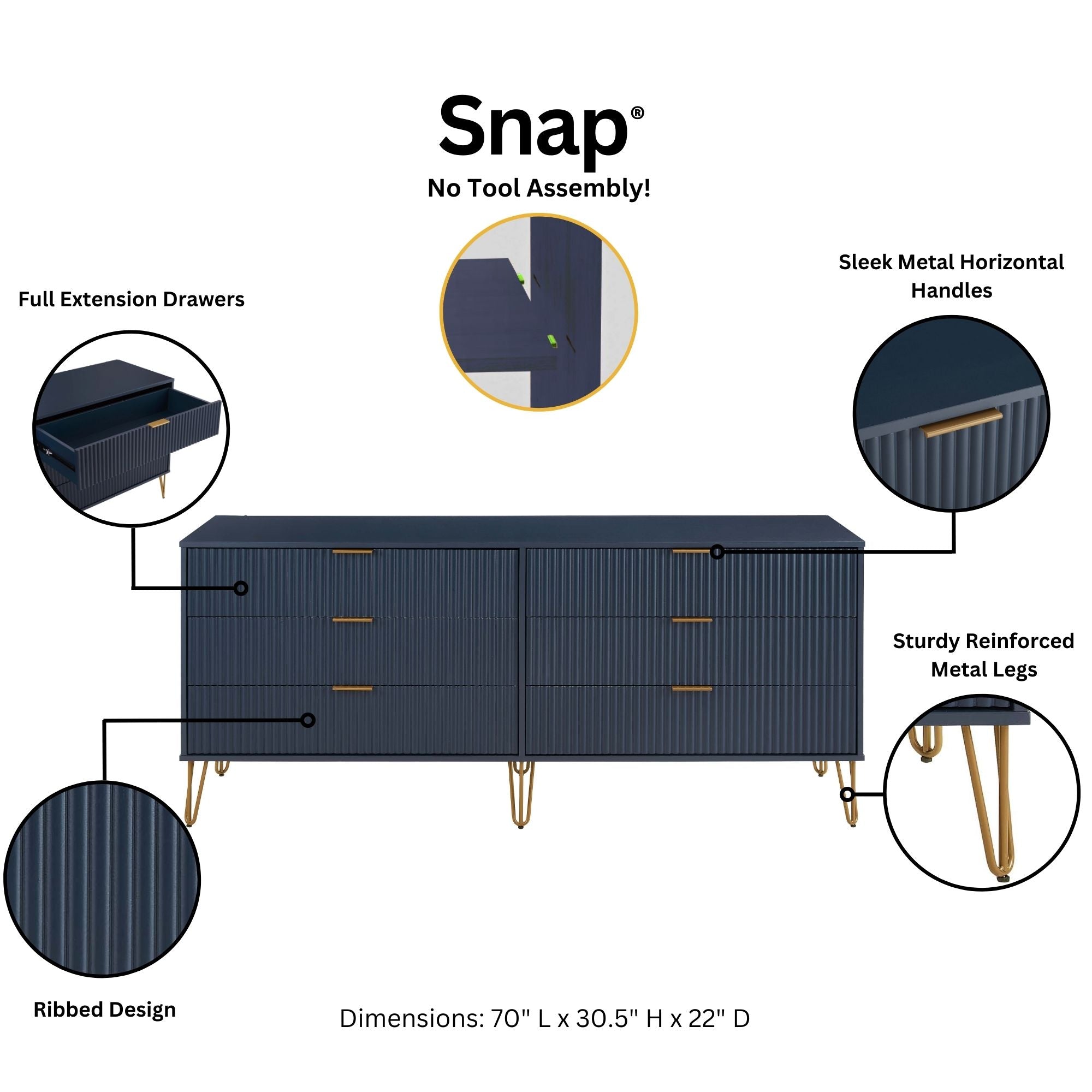 - "Snap It" Assembly! Assemble this Item with No Tools! Includes High Quality Internal Click Grooves for a Simple Assembly!