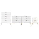 Description for 3-DB07-WH Manhattan Comfort3-Piece DUMBO Modern 5-Drawer Tall Dresser, DUMBO Modern 6-Drawer Double Low Dresser, and DUMBO Modern Nightstand 2.0 in White