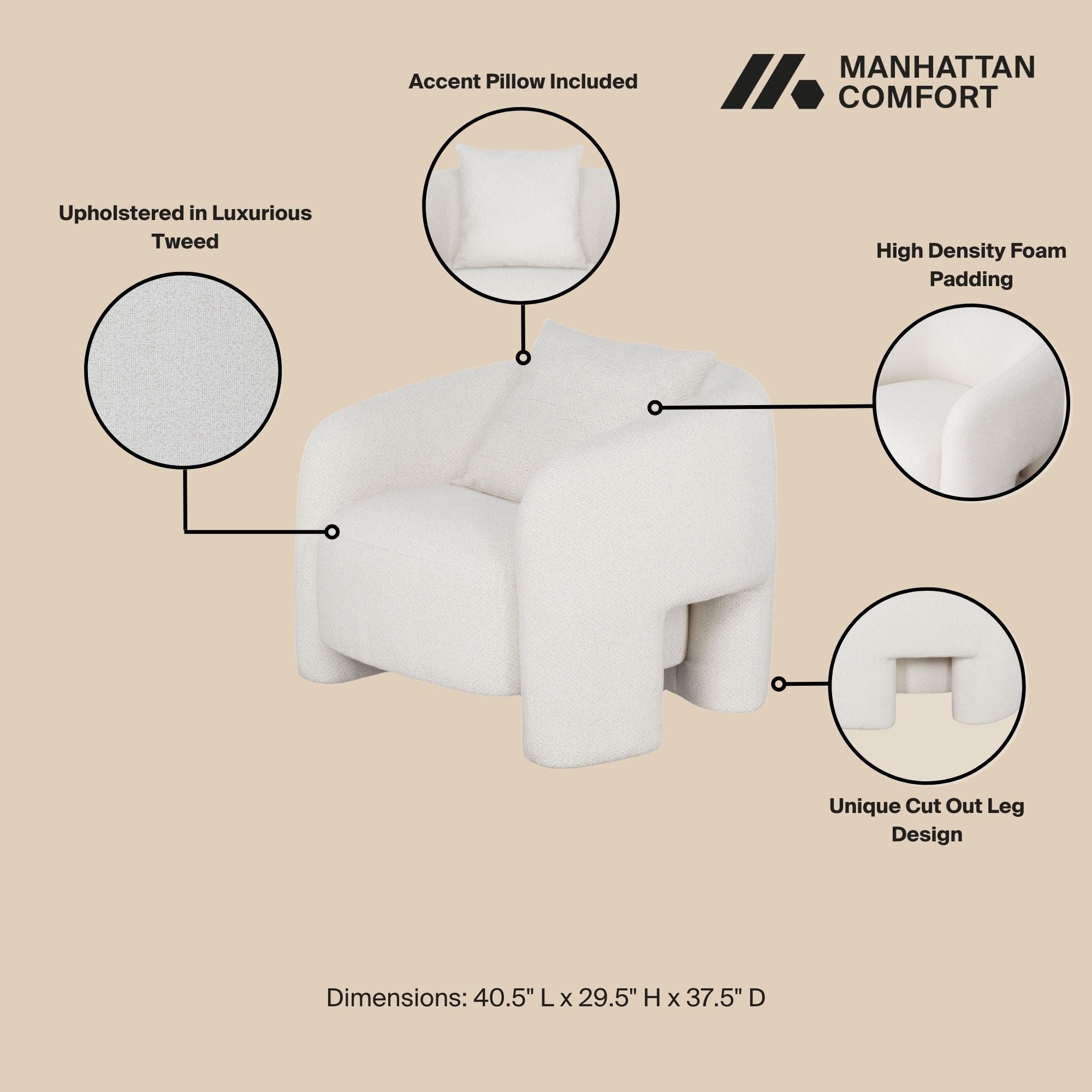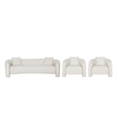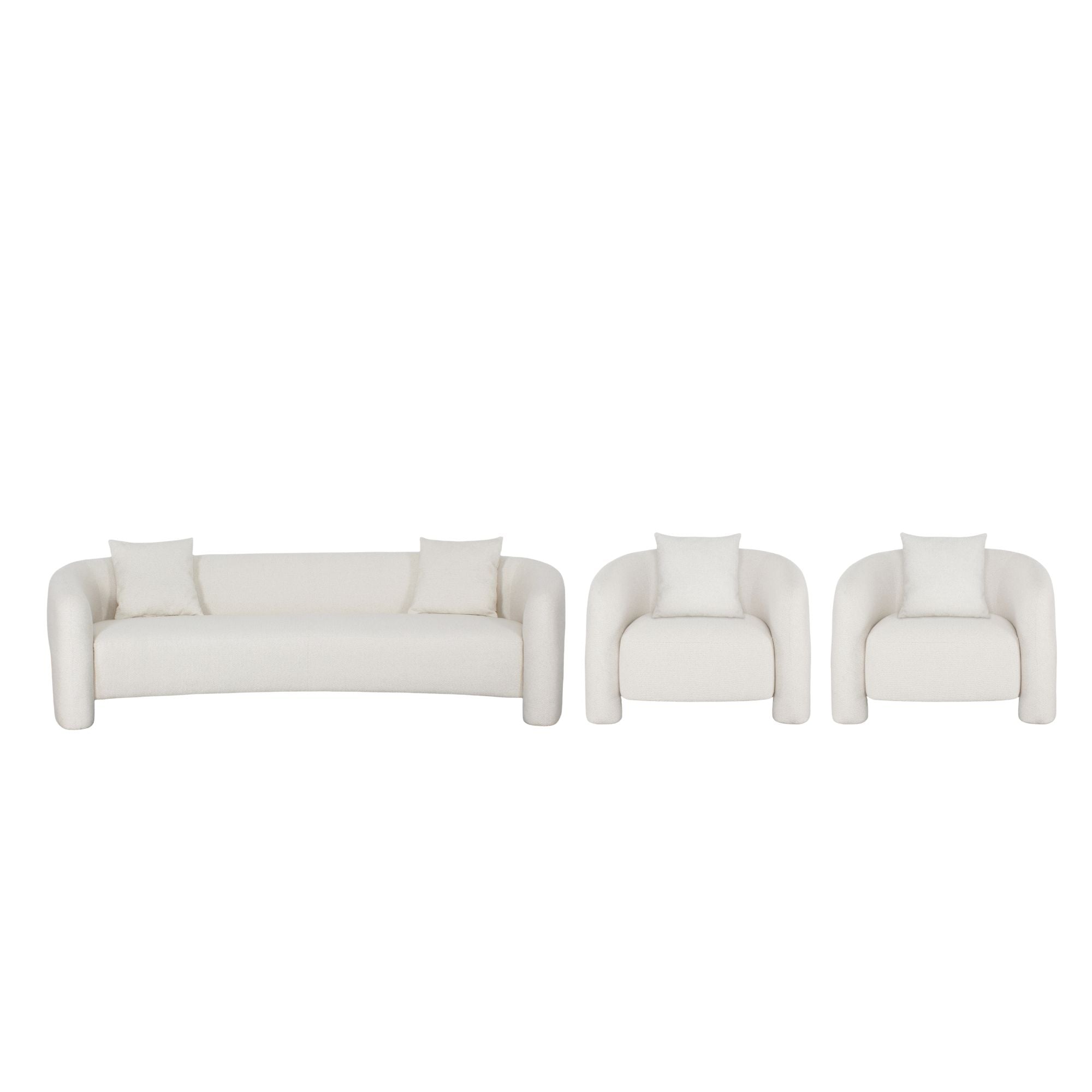 Introducing the Sylvia Collection, where soft curves and graceful silhouettes create a romantic ambiance in your living space. This accent chair and sofa embraces you with its gentle, enveloping arms and plush, cloud-like cushions, inviting moments of relaxation and intimate conversations. Draped in luxurious tweed, the Sylvia Collection evokes a sense of timeless elegance, perfect for those who appreciate the art of refined comfort. Whether sharing quiet moments or making memories, this collection is the perfect blend of style and romance, turning any room into a serene haven of tranquility.- Modern Glam Sofa and Accent Chairs for Living Room Usage. Set of 3.