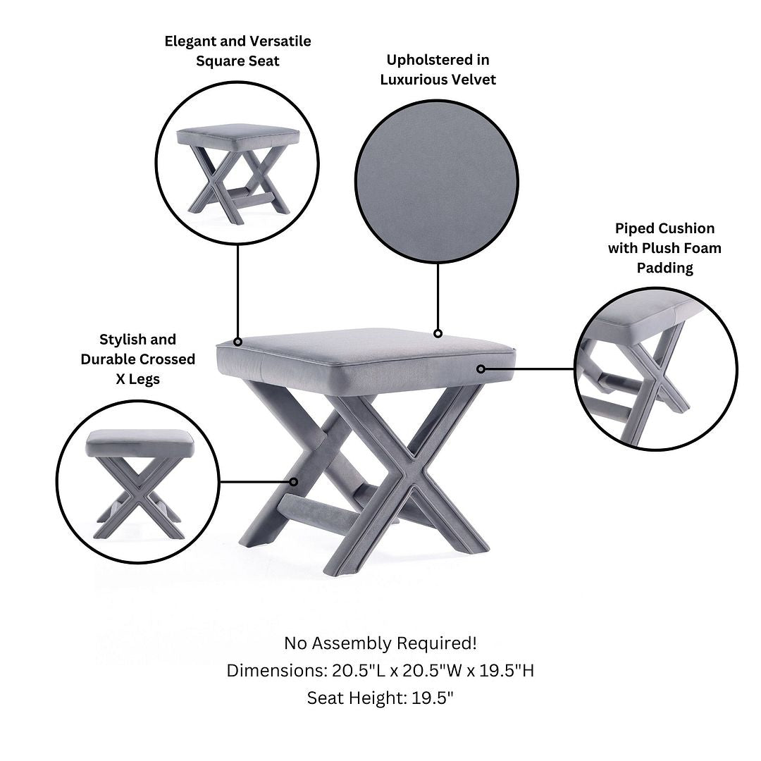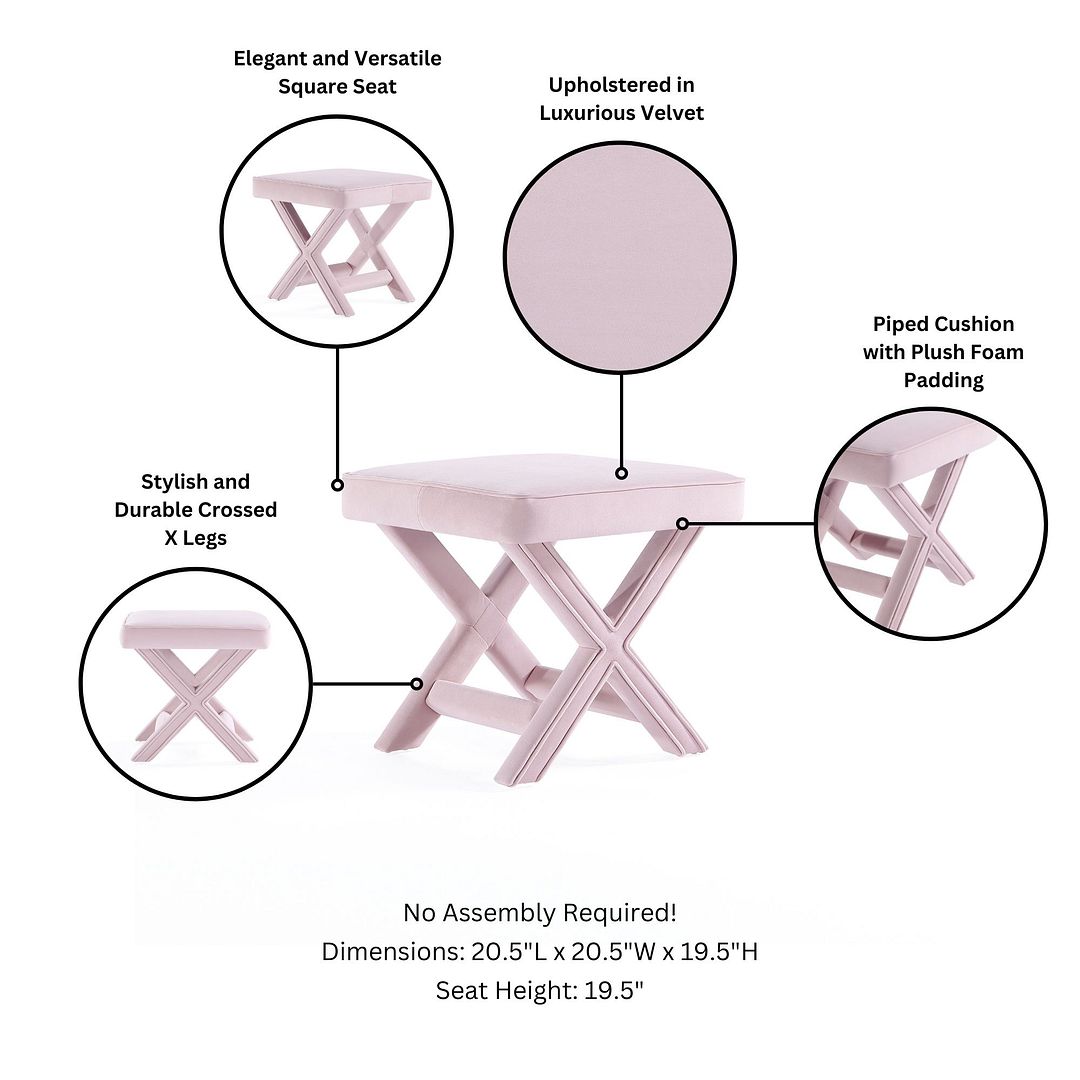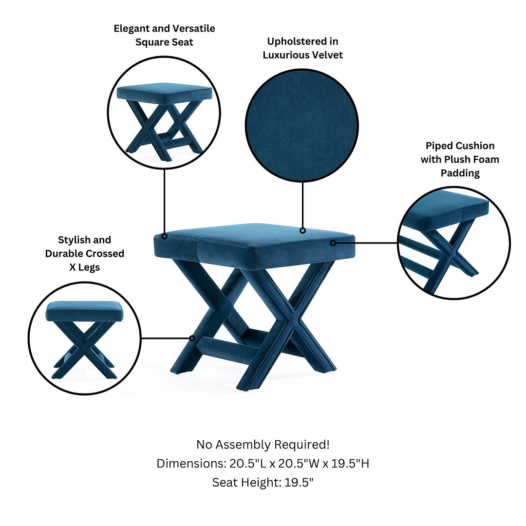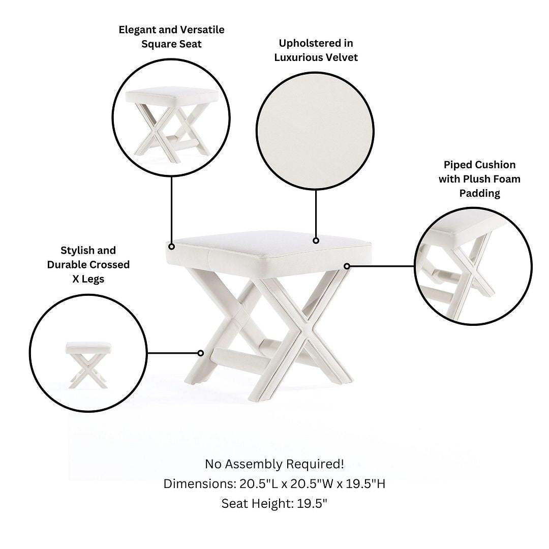 This mid-century modern ottoman, draped in sumptuous velvet, beckons with an allure that transcends time. Its X-crossed base, a dance of elegant geometry, supports not just the plush seat but also the promise of moments shared in luxurious comfort, making it a captivating centerpiece for intimate conversations and stolen glances.- Mid-Century Modern Ottoman Perfect for Living Room and Bedroom Use.