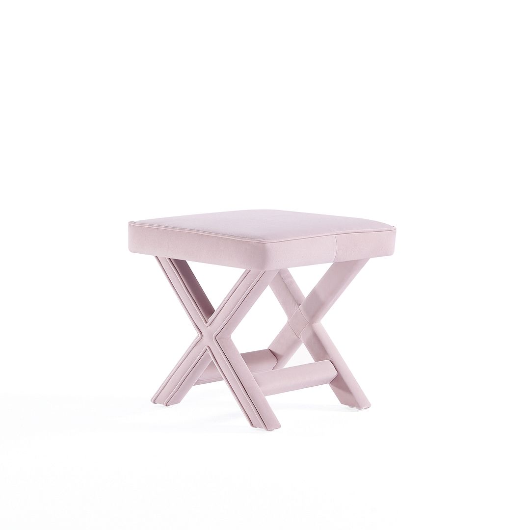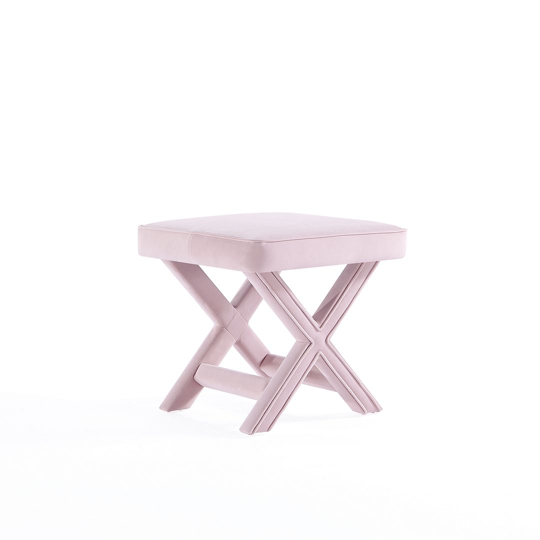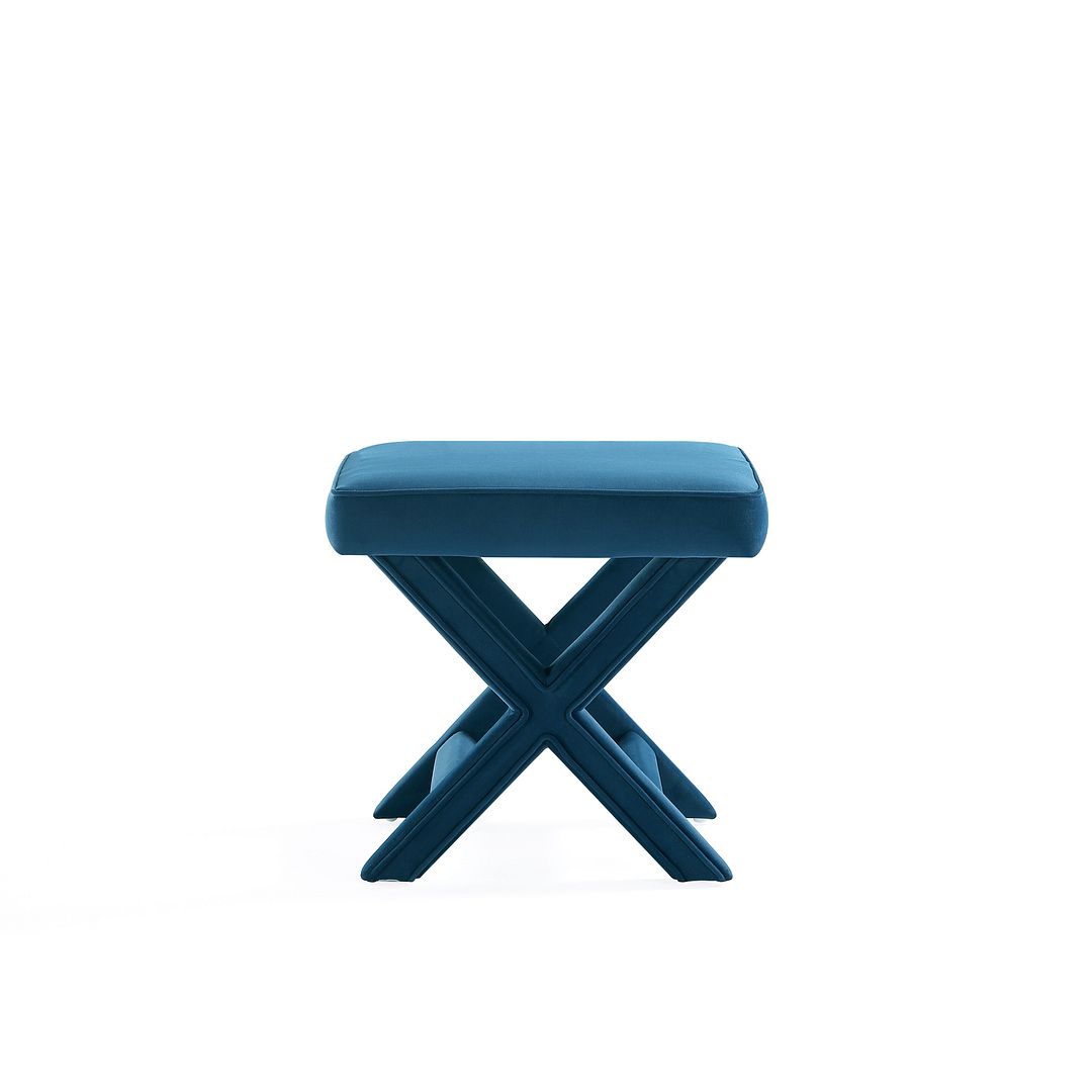 This mid-century modern ottoman, draped in sumptuous velvet, beckons with an allure that transcends time. Its X-crossed base, a dance of elegant geometry, supports not just the plush seat but also the promise of moments shared in luxurious comfort, making it a captivating centerpiece for intimate conversations and stolen glances.- Mid-Century Modern Ottoman Perfect for Living Room and Bedroom Use.