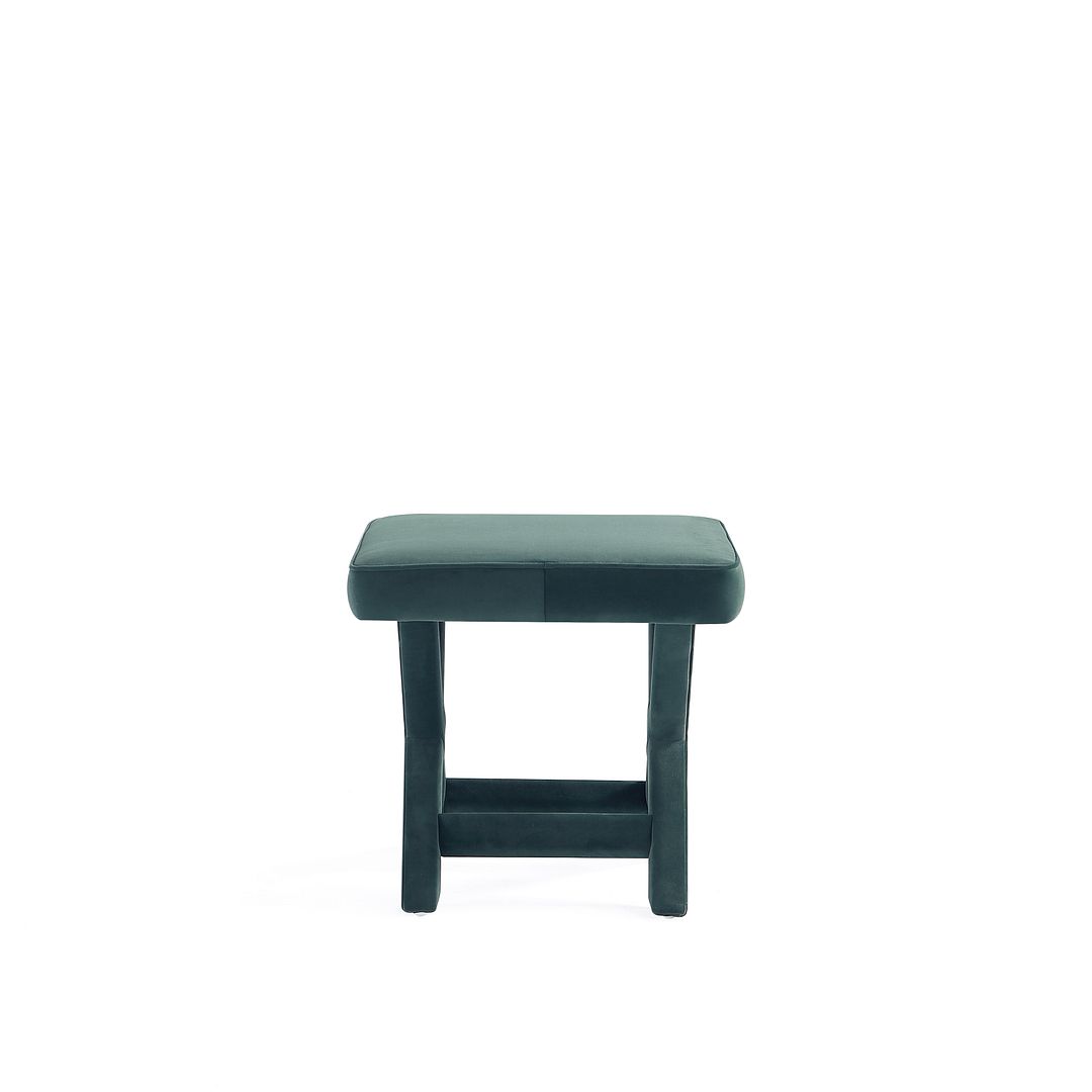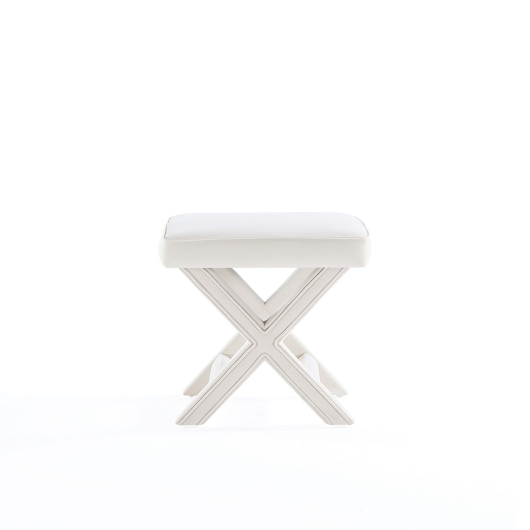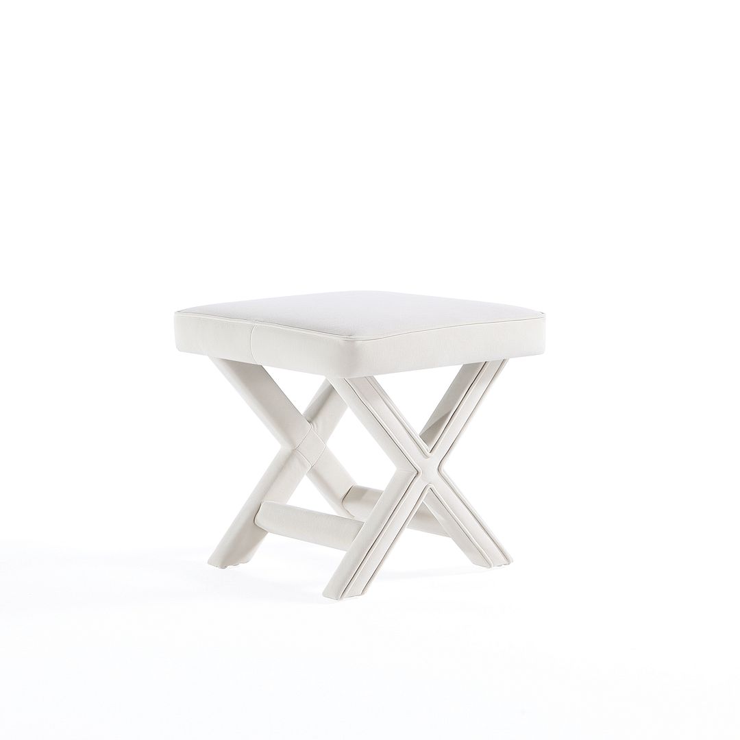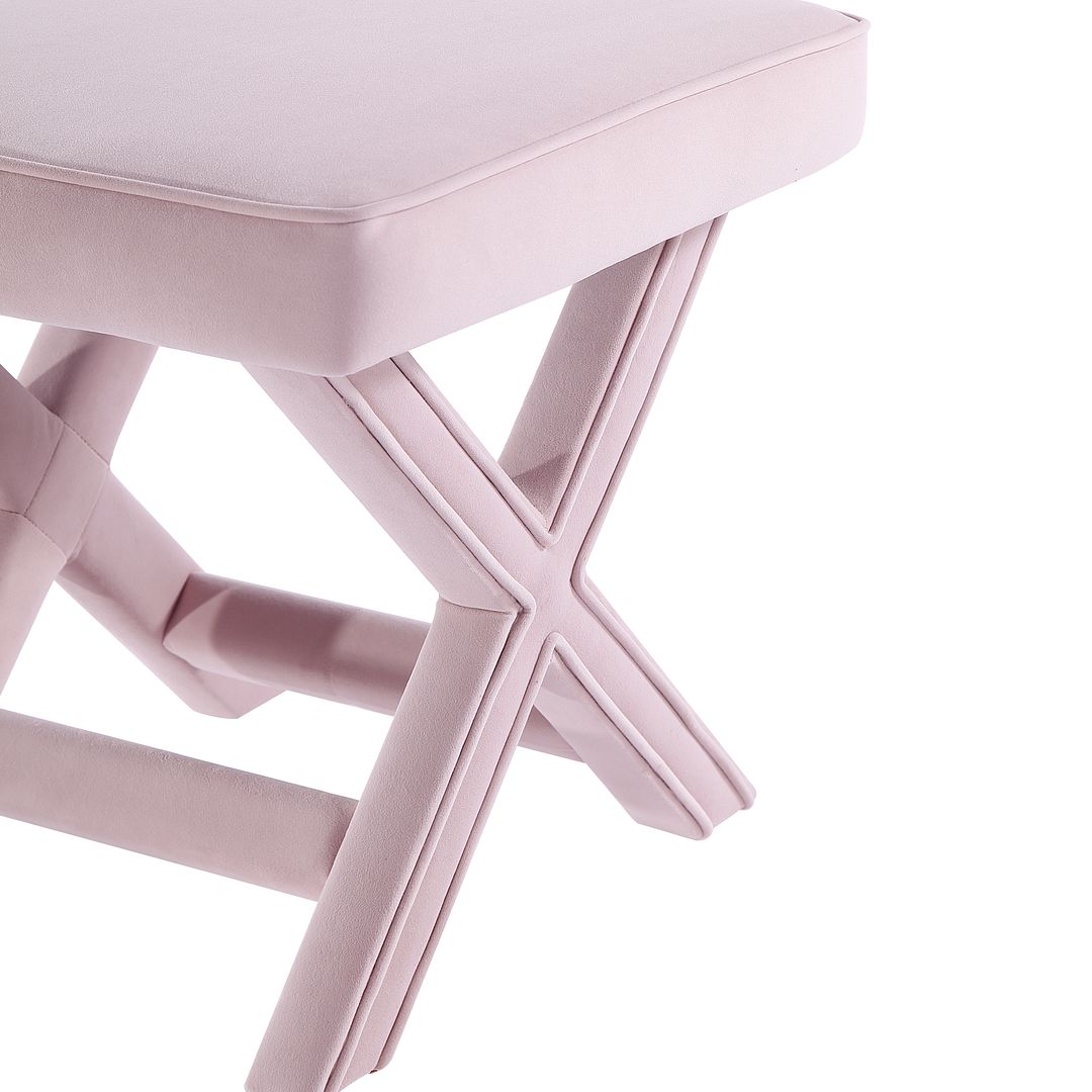 This mid-century modern ottoman, draped in sumptuous velvet, beckons with an allure that transcends time. Its X-crossed base, a dance of elegant geometry, supports not just the plush seat but also the promise of moments shared in luxurious comfort, making it a captivating centerpiece for intimate conversations and stolen glances.- Mid-Century Modern Ottoman Perfect for Living Room and Bedroom Use.