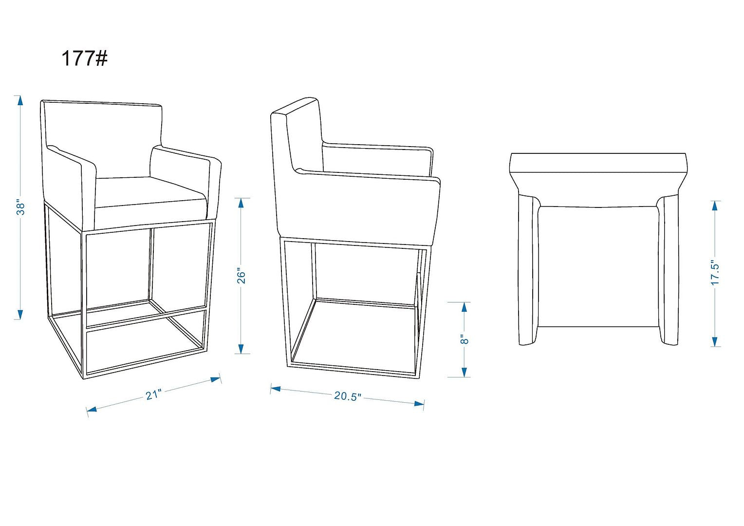 An eye-catching modern profile with a touch of glam. Genuine Leather wraps the cleverly shaped arms, back, and gently cushioned seat, resting on sturdy, slender metal legs. A footrest runs along the front of the stool, providing added comfort to this chic piece.- Mid-Century Modern Counter Stool with Backseat Perfect for Bar and Kitchen Use.
