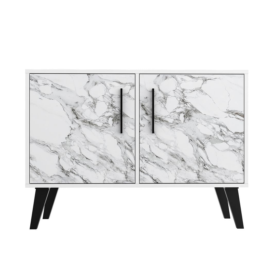 - Includes 3 Concealed Shelving Spaces and 2 Doors. Option to remove 1 Shelf for 1 Interior Cubby Space.