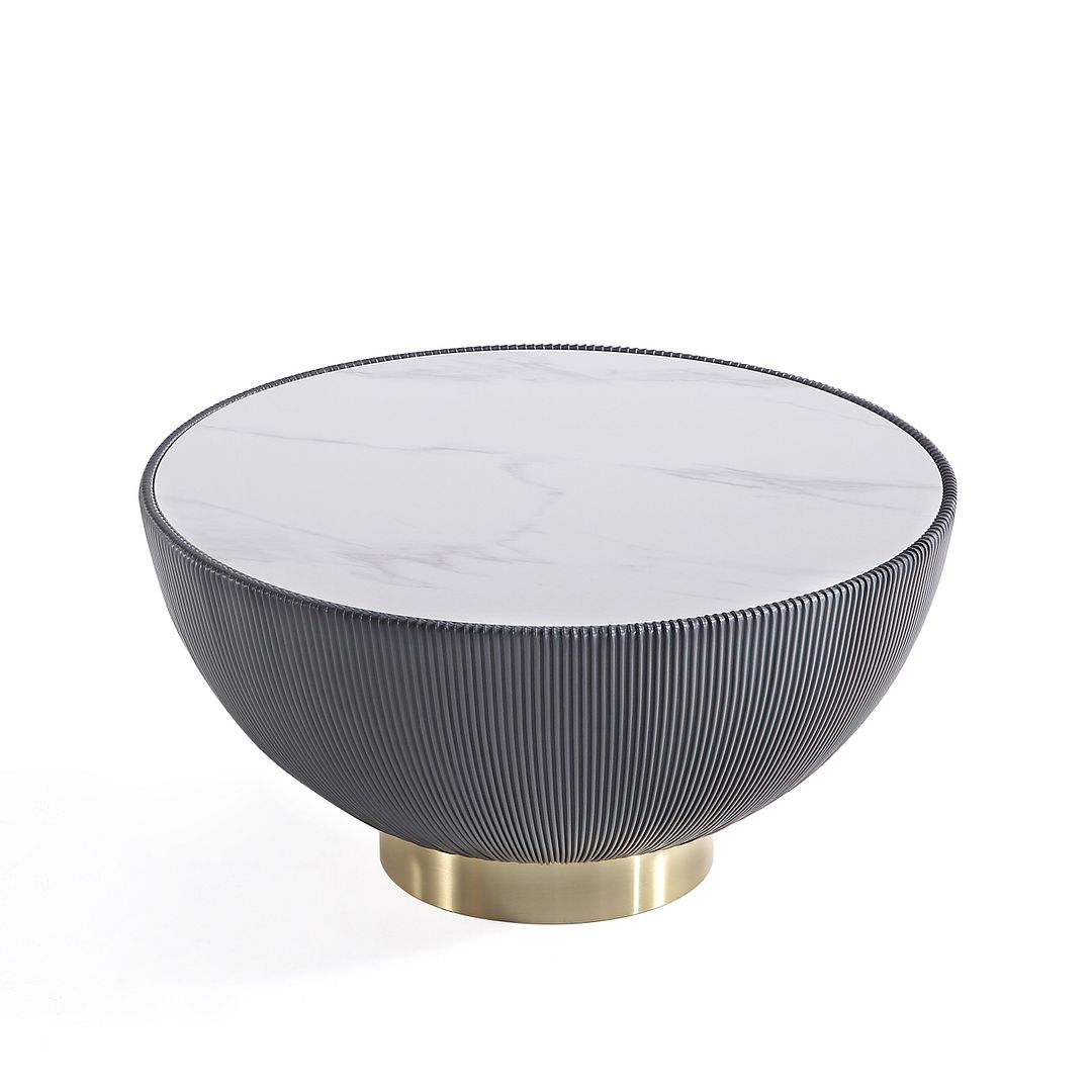 Description for CT012-GY Manhattan Comfort Modern Anderson Coffee Table Upholstered in Grey Leatherette with Ceramic Faux Marble Tabletop