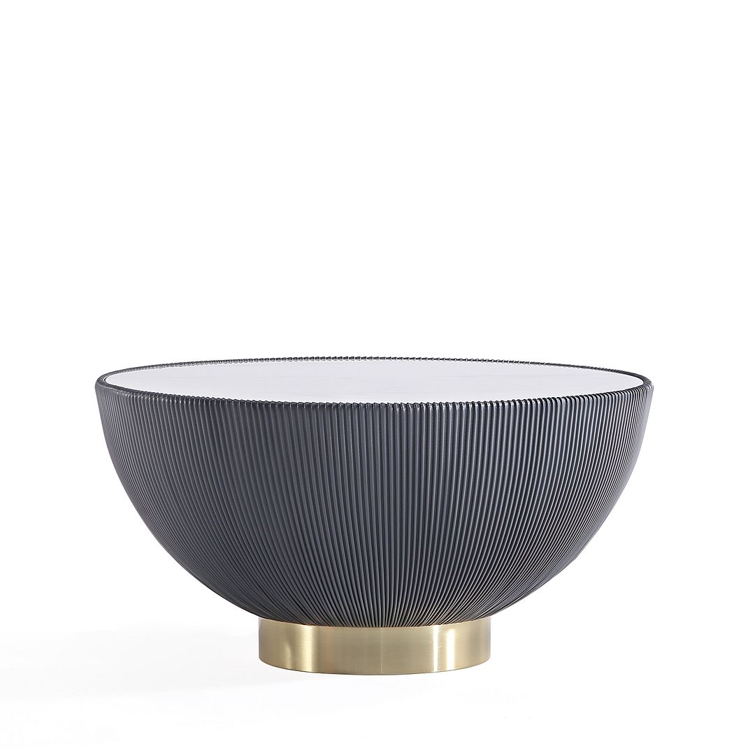 Introducing our striking Modern Anderson Coffee Table, a versatile addition to your living and dining spaces. Crafted with artistic flair, it features unique leatherette pleating and beautiful gold metal es that adds a touch of stunning design to your home decor. Built with a high-quality steel frame and feet, this table effortlessly combines style and durability. Pair it with our Manhattan Comfort End Tables to create a cohesive and stylish look, making your living and dining areas stand out.- Modern End Table for Living Room Use.