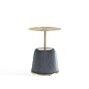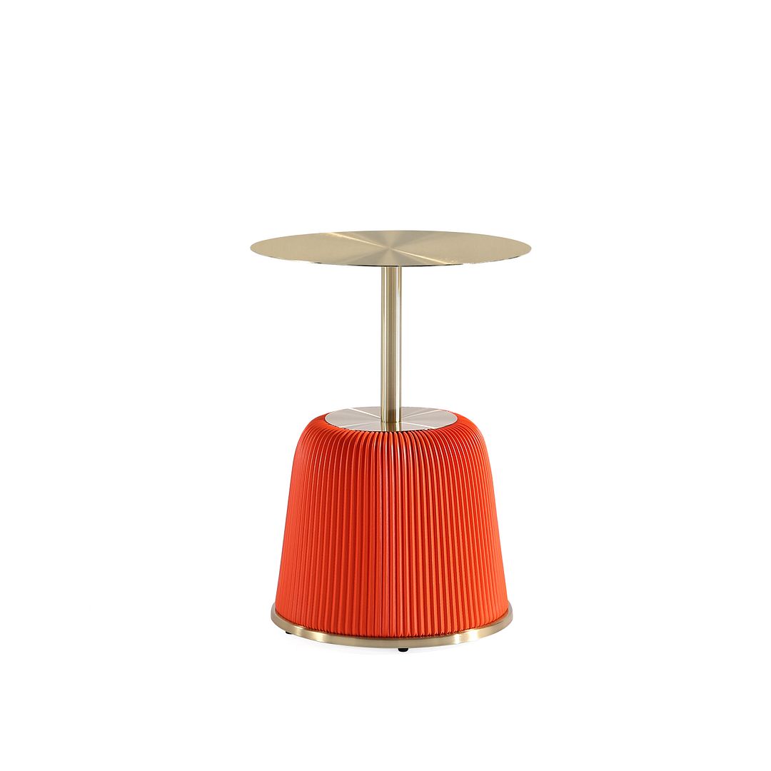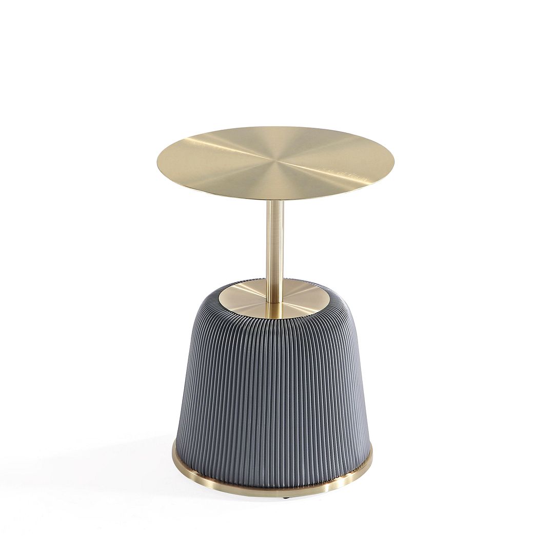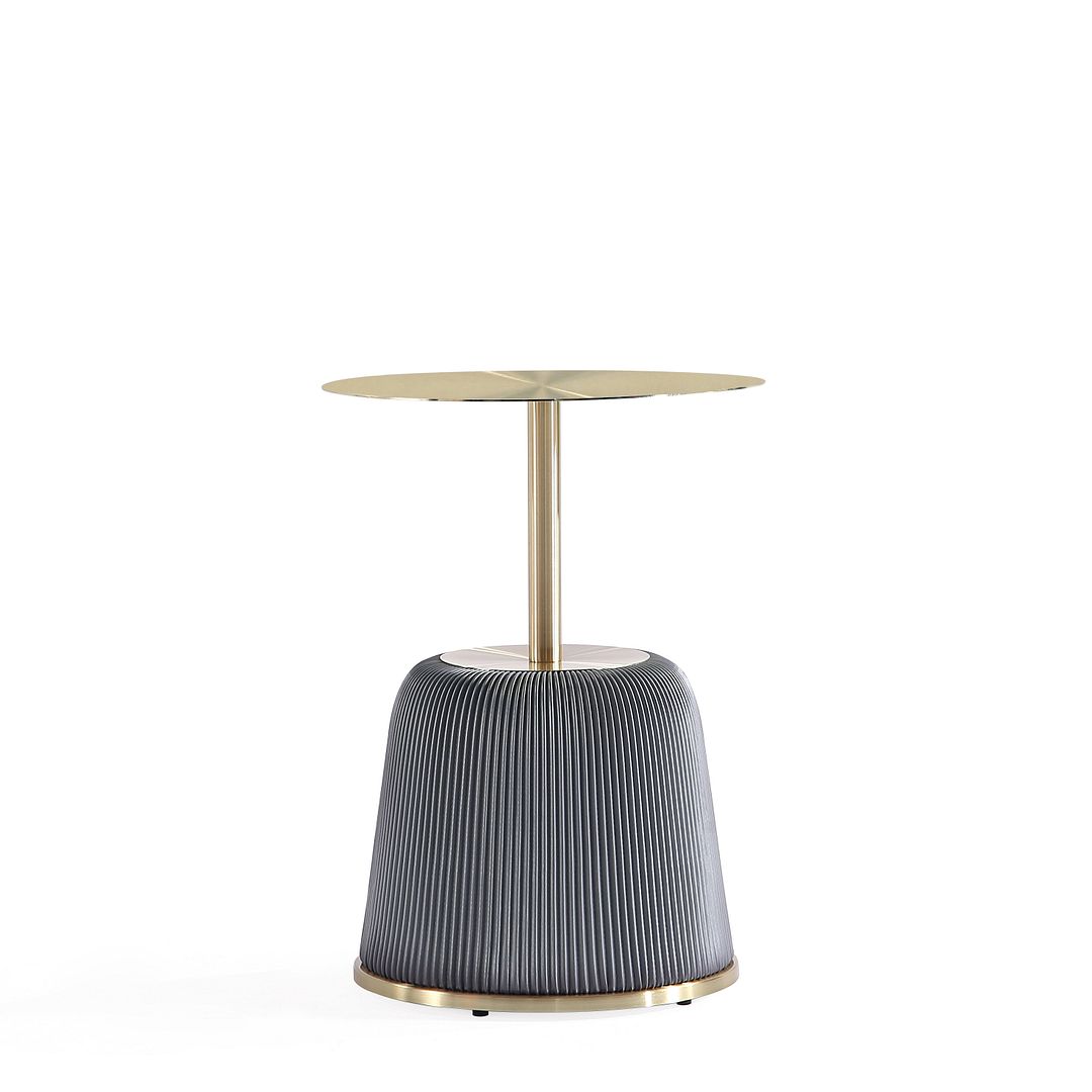 Introducing our striking Modern Anderson End Table, a versatile addition to your living and dining spaces. Crafted with artistic flair, it features unique leatherette pleating and beautiful gold metal es that adds a touch of stunning design to your home decor. Built with a high-quality steel frame and feet, this table effortlessly combines style and durability. Pair it with our Manhattan Comfort Coffee Tables to create a cohesive and stylish look, making your living and dining areas stand out.- Modern End Table for Living Room Use.