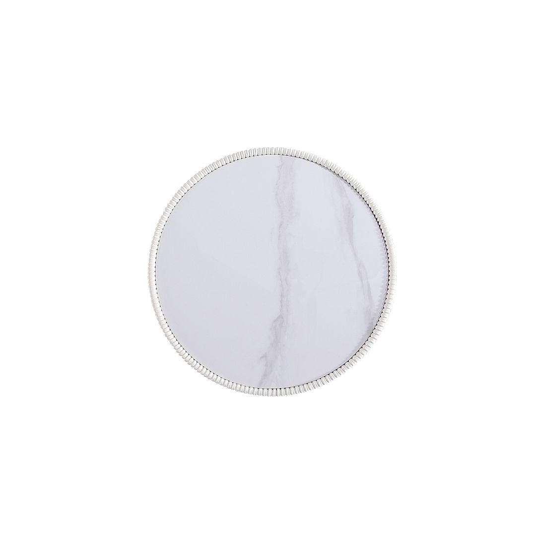 Description for ET005-GY Manhattan Comfort Modern Anderson End Table 2.0 Upholstered in Grey Leatherette with Ceramic Faux Marble Tabletop