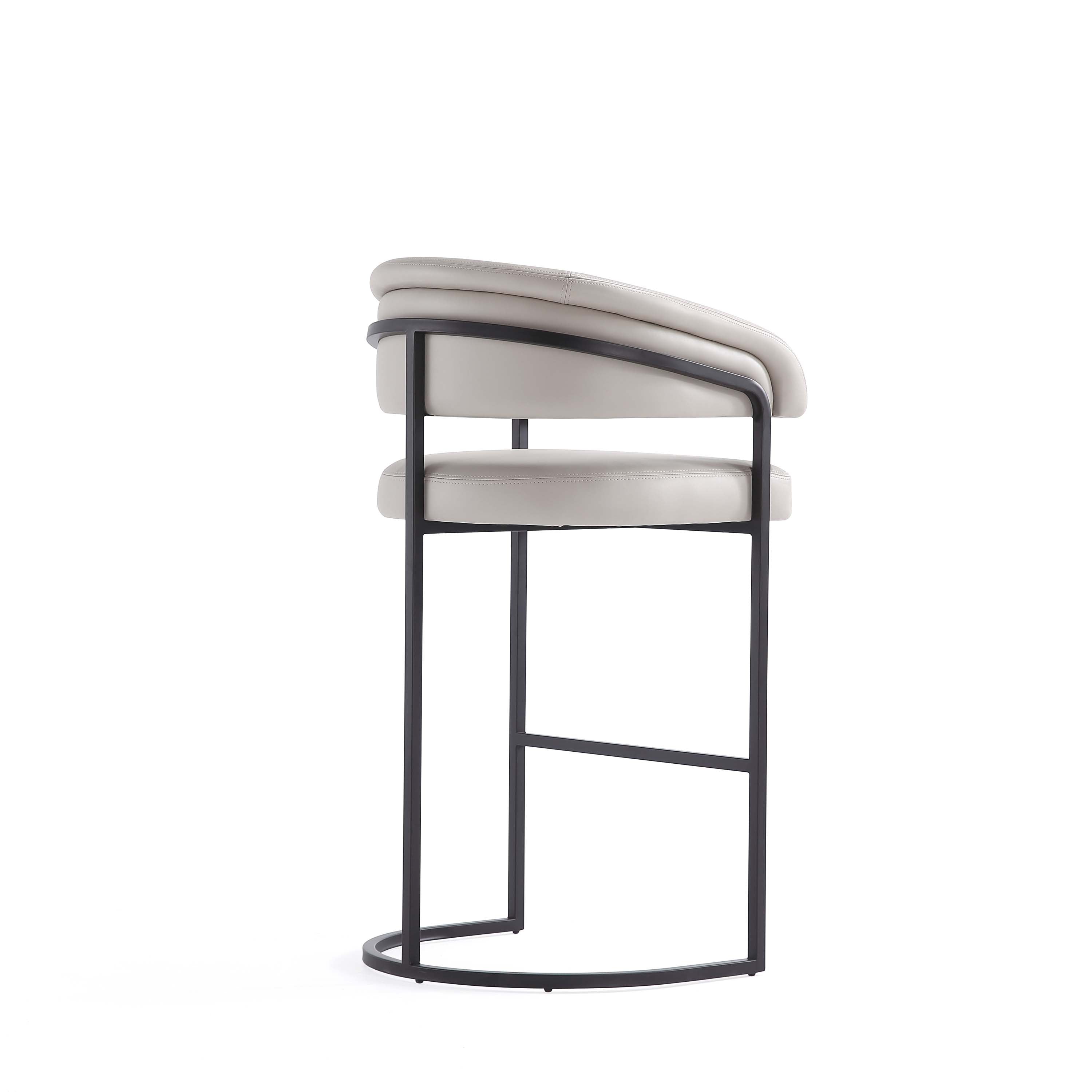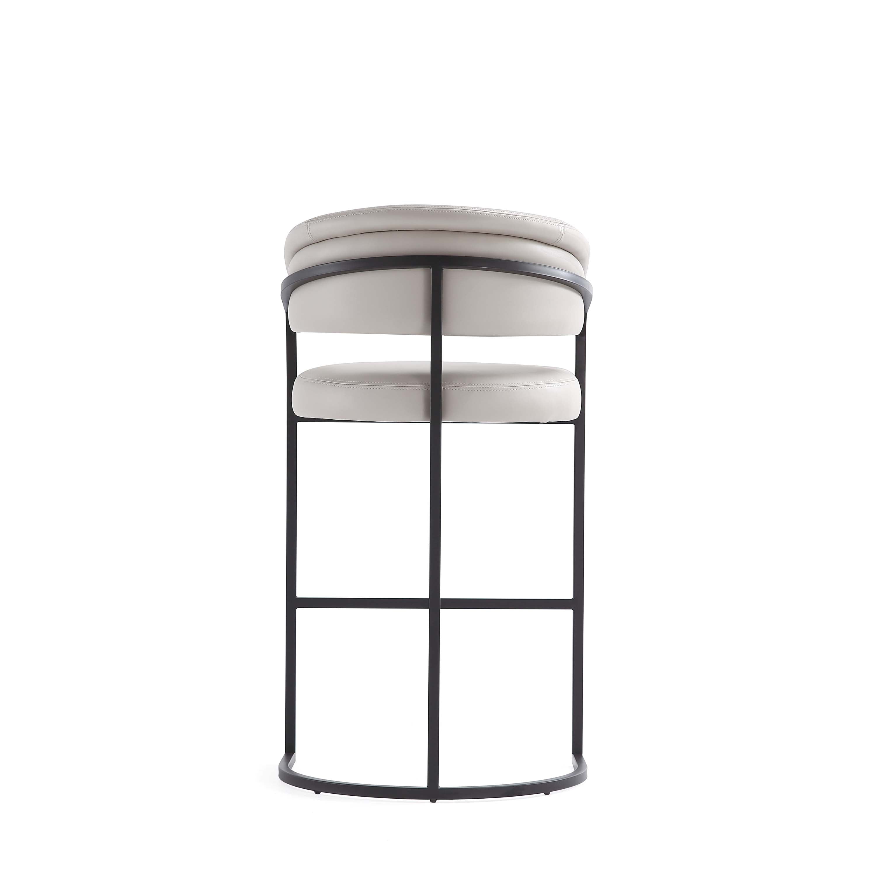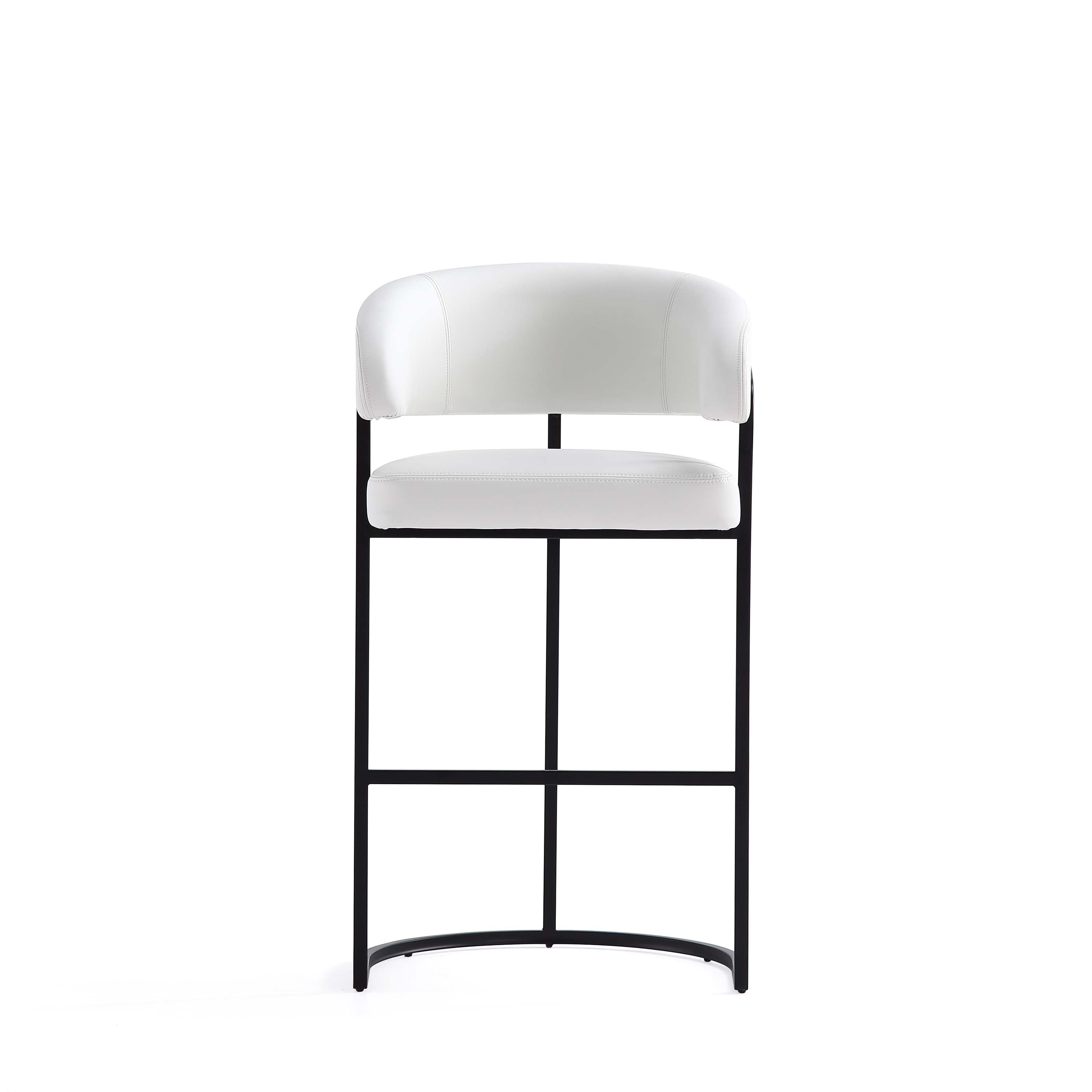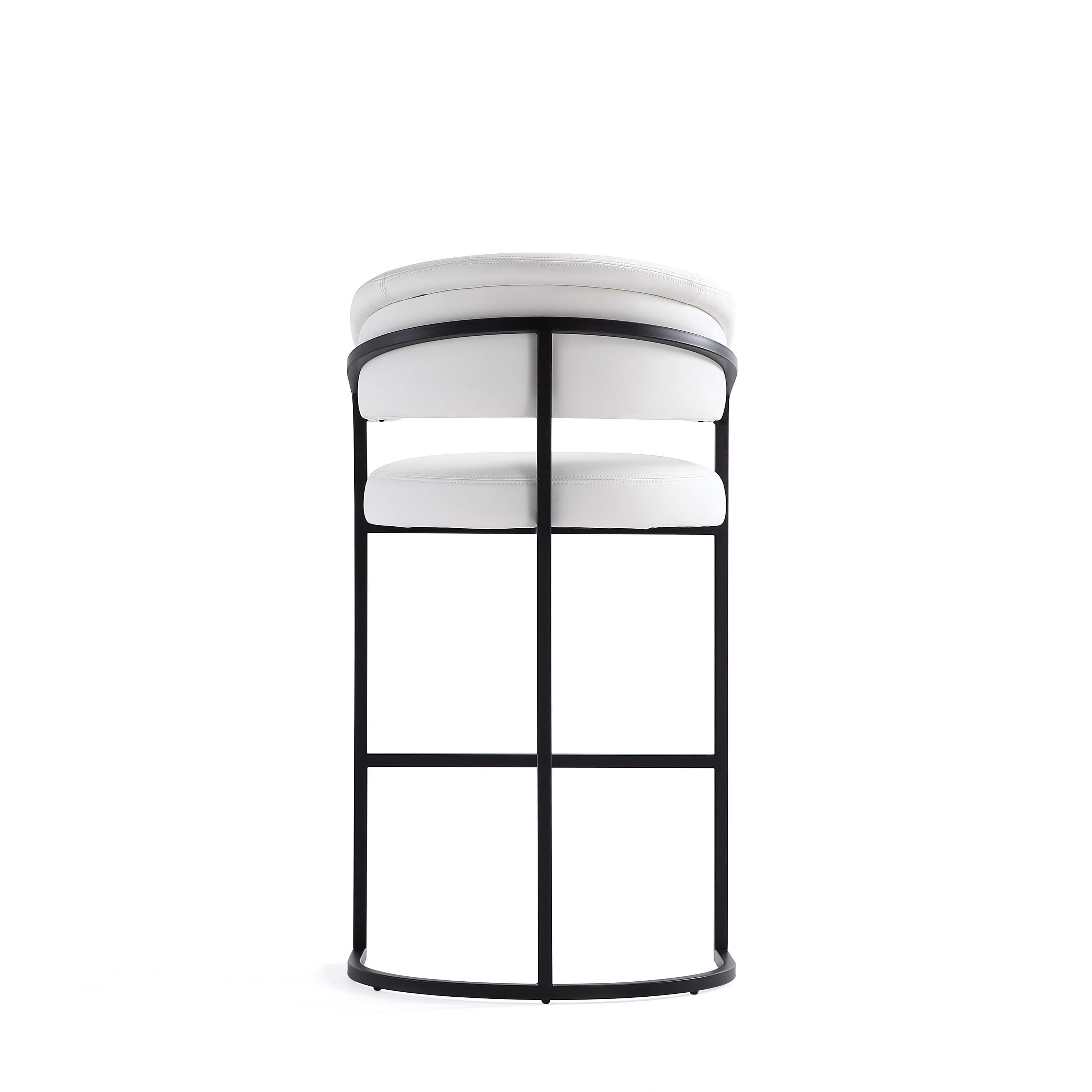 Introducing the Augusta Collection, a premier seating collection that seamlessly combines style and comfort. Featuring dining chairs, counter stools, and bar stools, each piece is upholstered in luxurious leatherette with high-density foam padding, ensuring a plush seating experience. The geometric modern base, crafted from durable metal, offers a striking visual appeal while providing exceptional stability. ed with a sleek matte black frame, the Augusta Collection embodies contemporary elegance and enduring quality, making it the perfect choice for elevating your dining and bar areas.- Modern Barstool with Backrest Perfect for Bar and Kitchen Use.