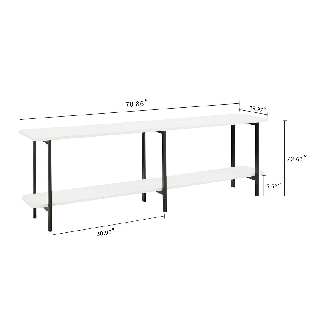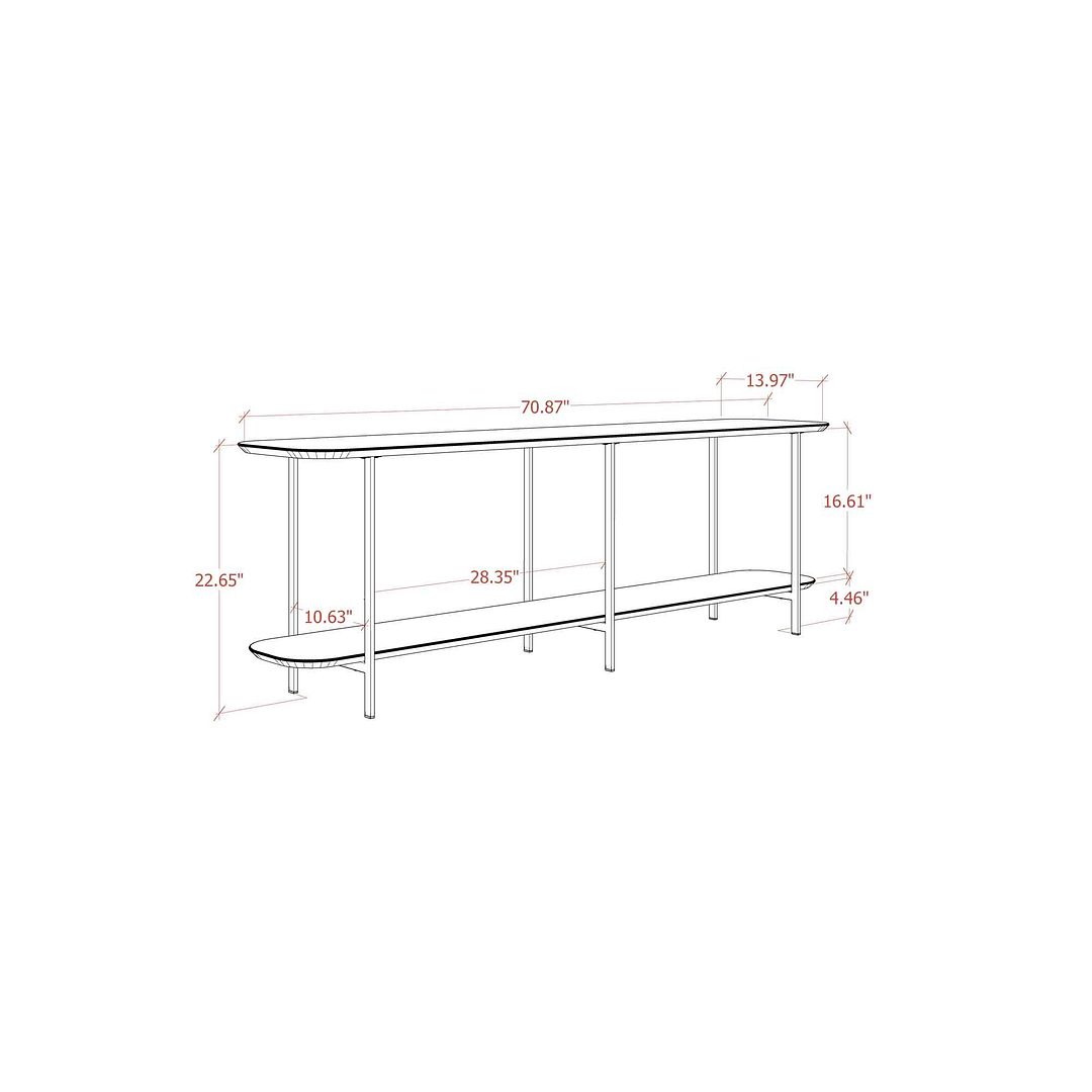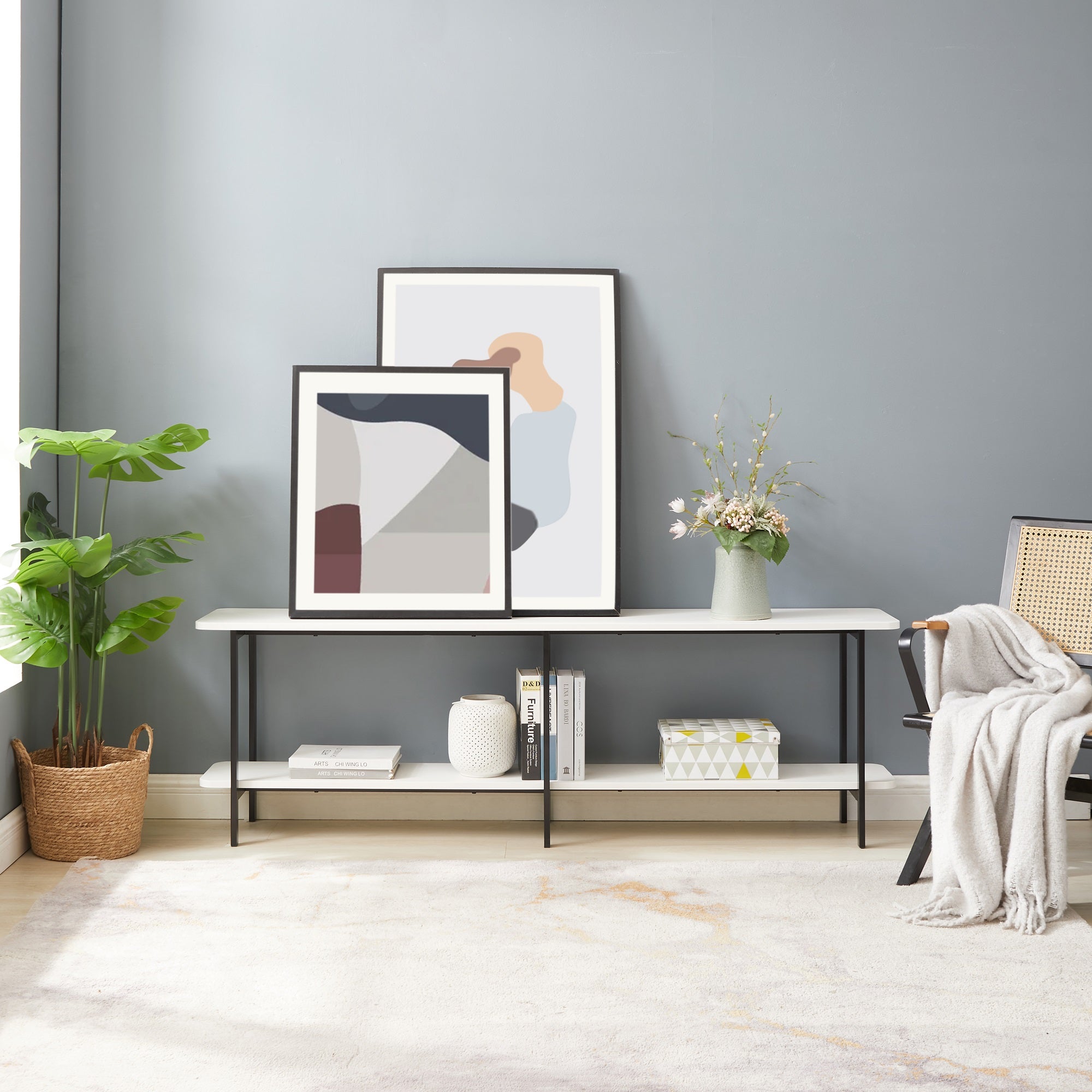 The Celine console table takes your living room style up a notch and impresses guests by adding visual interest to your space. With its two-tiered design and steel legs, it easily blends into a modern contemporary space and slides behind a sofa or sits in an entryway, making it both a stylish and functional addition. Add a tray for keys, a lamp, framed family photos up top, and your favorite coffee table books or decorative accents to make it your own.- Modern Contemporary Low Console Perfect For Living Room and Home Office Usage.