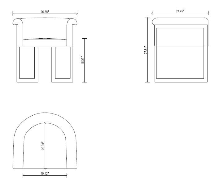 - W X H X D : 26.38 in. Length, 27.81 in. Height, 24.49 in. Depth.