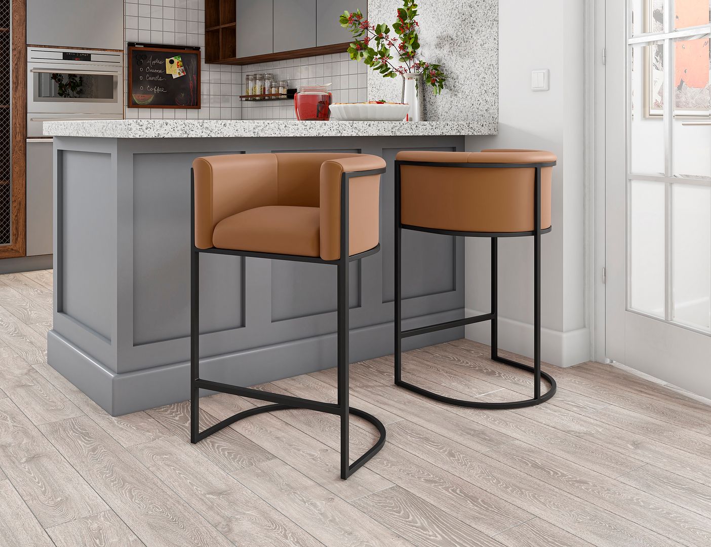 - Mid-Century Modern Counter Stool with Backseat Perfect for Bar and Kitchen Use. Set of 2
