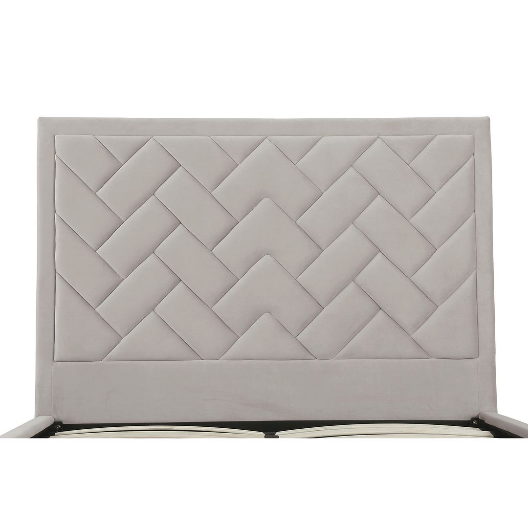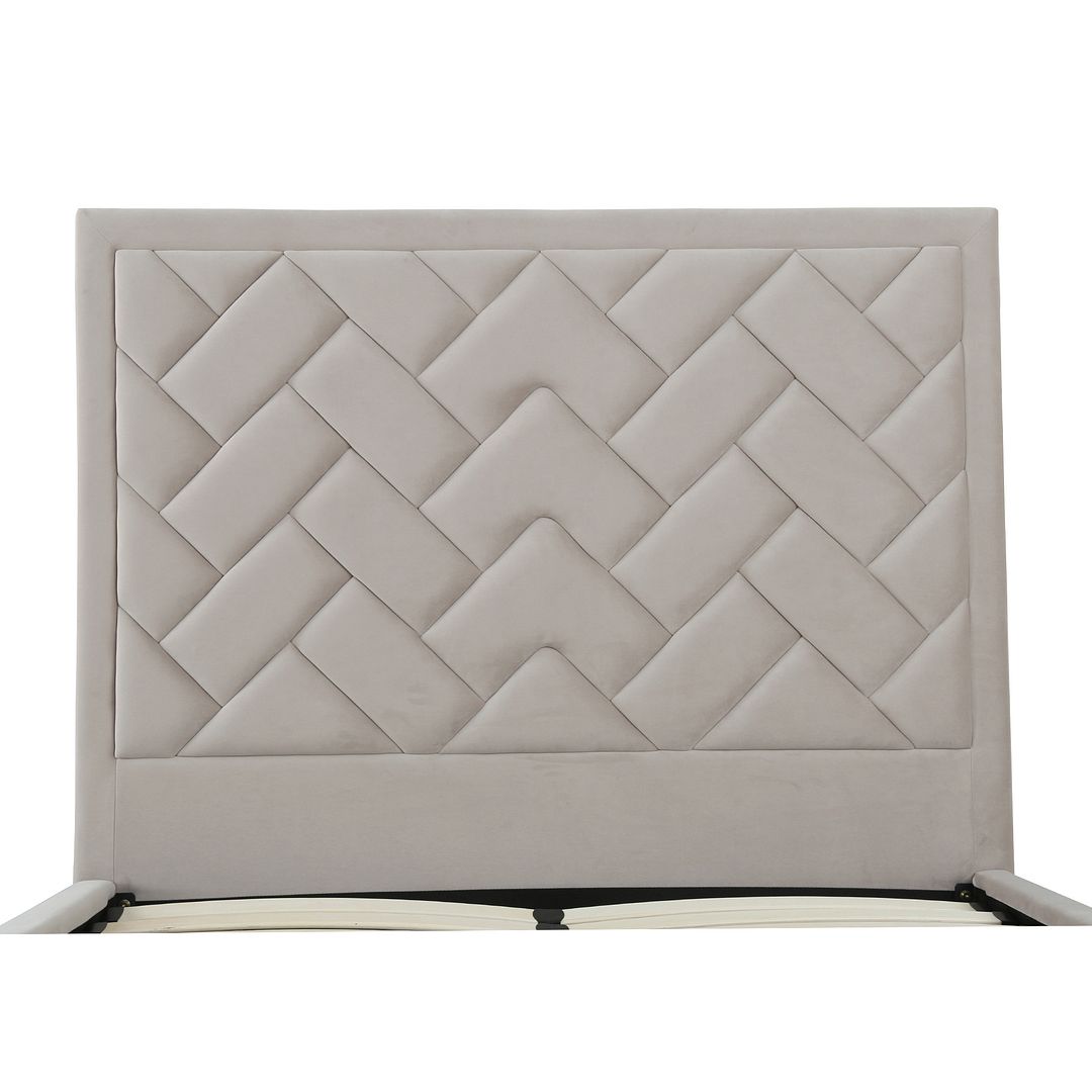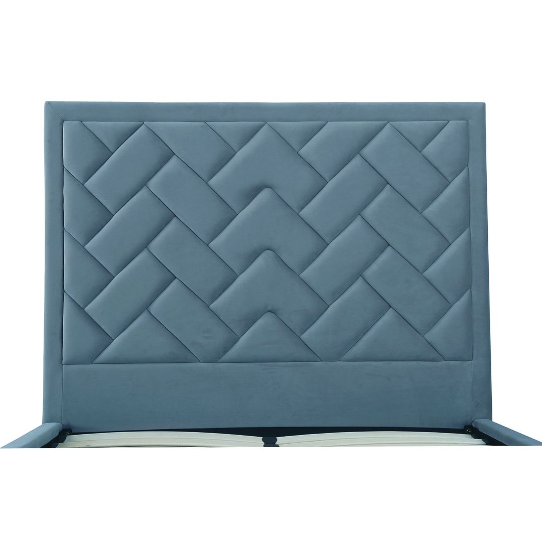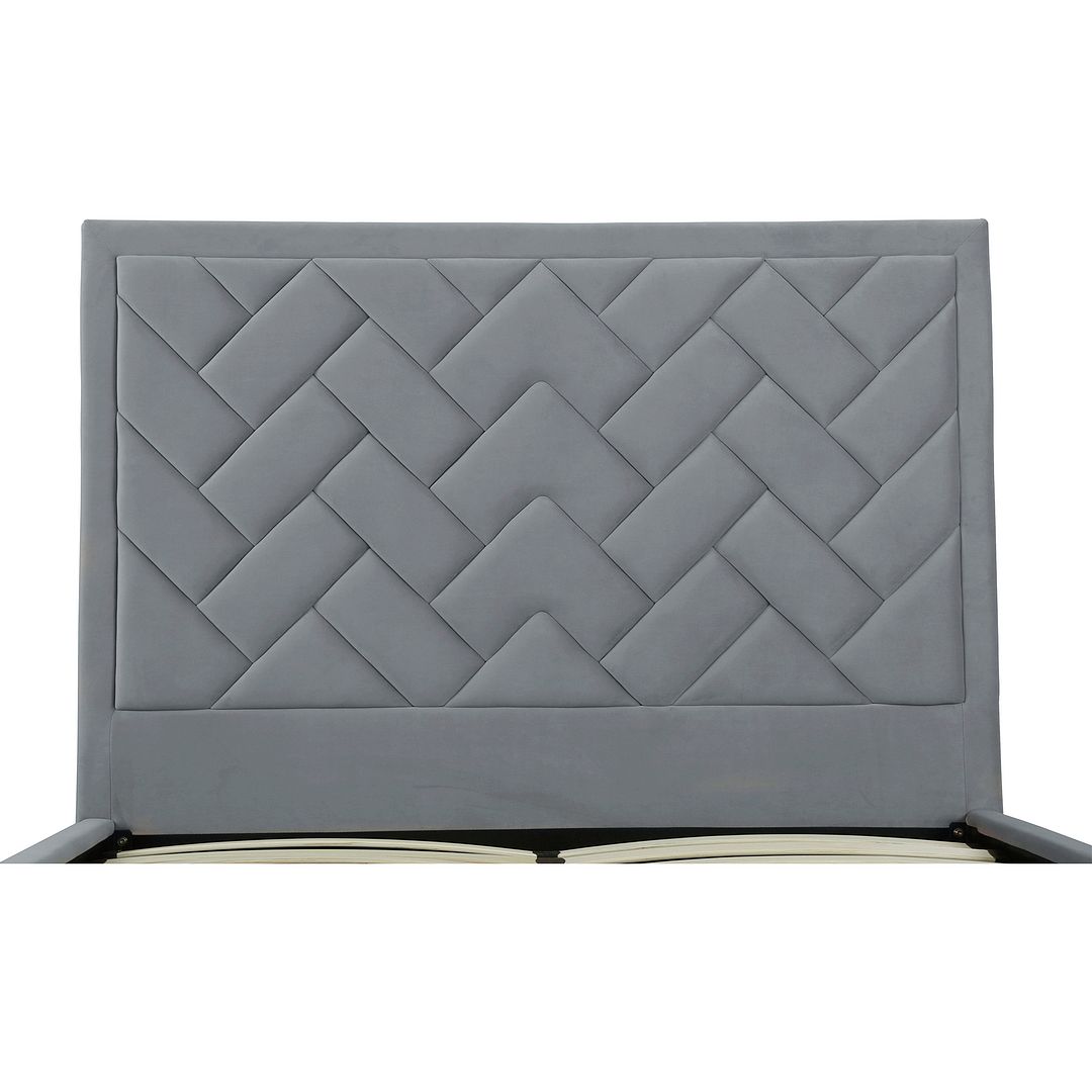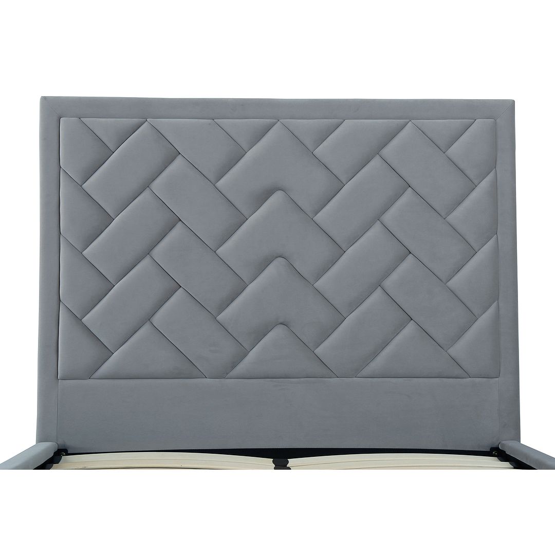This platform bed anchors your bedroom in glam, mid-century-inspired style. It's built with an engineered wood frame and features understated side rails and footboard for a clean-lined silhouette. The headboard is upholstered in a luxurious velvet that features chevron style weave stitching. Plus, it's filled with foam for some extra cushion behind your head. Angled black iron legs with gold tips support the bed with a retro aesthetic. This bed arrives with slats and a center support leg, so you don't have to use a box spring with your choice of mattress.- Mid-Century Modern Twin Bedframe with Headboard for Bedroom Use.
