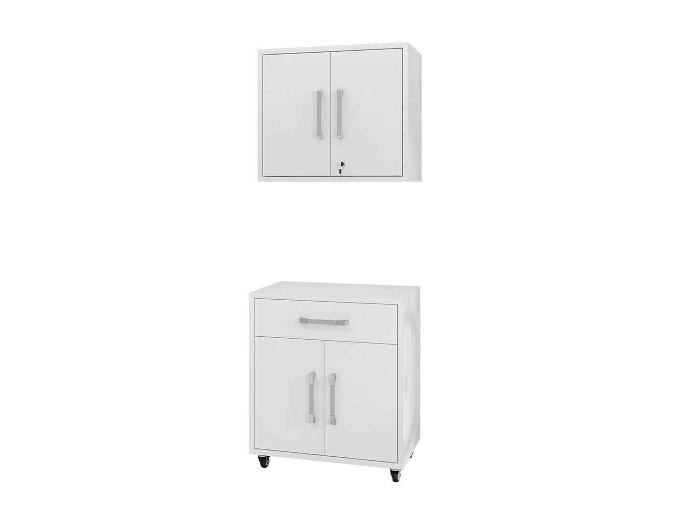- Includes 1 Floating Wall Cabinet and 1 Mobile Cabinet.