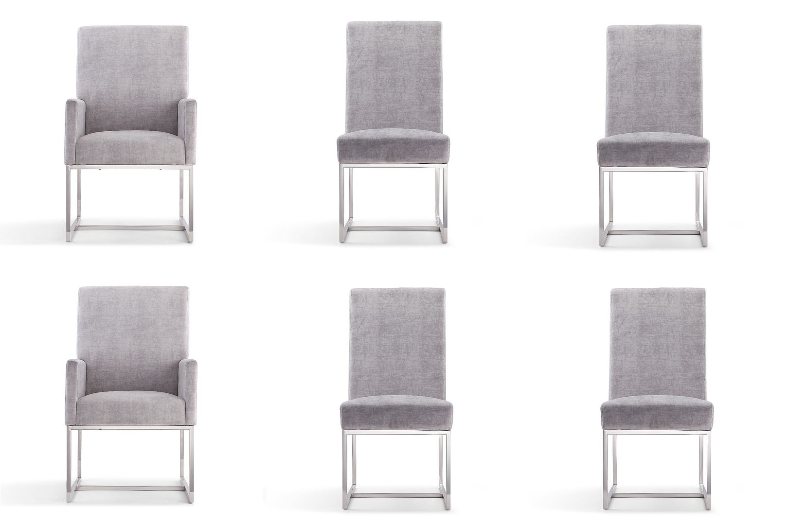 - Armchair Measures: 23.74 in. Length, 41.54 in. Height, 26.81 in. Depth. Dining Chairs Measures: 19.68 in. Length, 41.54 in. Height, 26.26 in. Depth.
