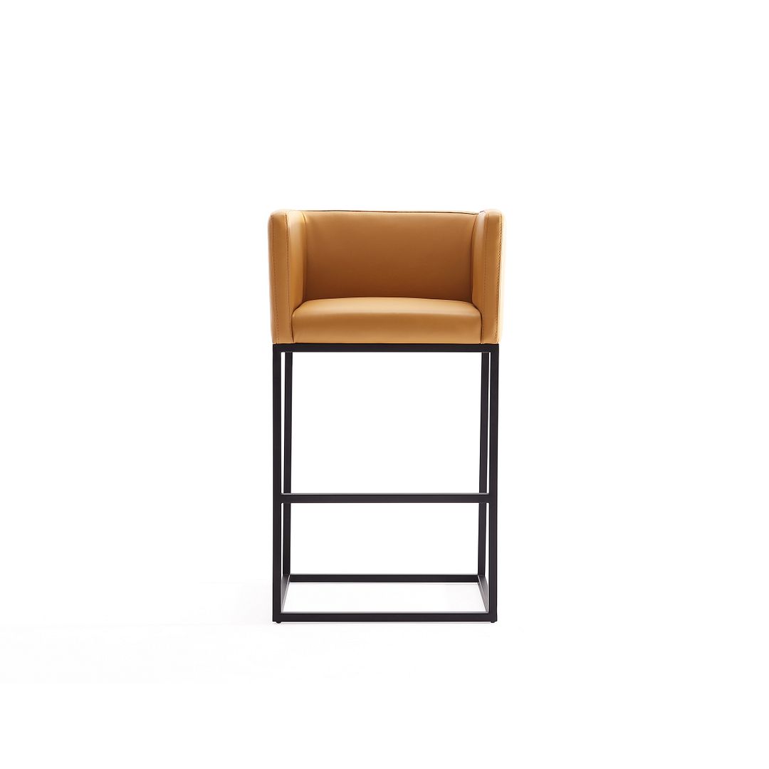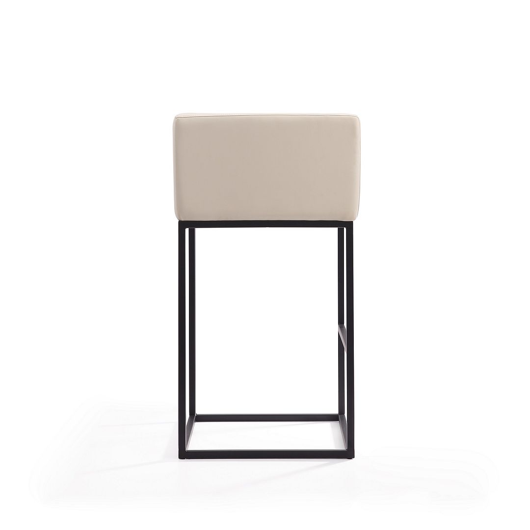 A tubular black steel frame gives our postmodern stool a machine-age reference. Its slender legs support a cushioned, tailored seat for a crisp and geometric silhouette.- Mid-Century Modern Counter Stool with Backseat Perfect for Bar and Kitchen Use.