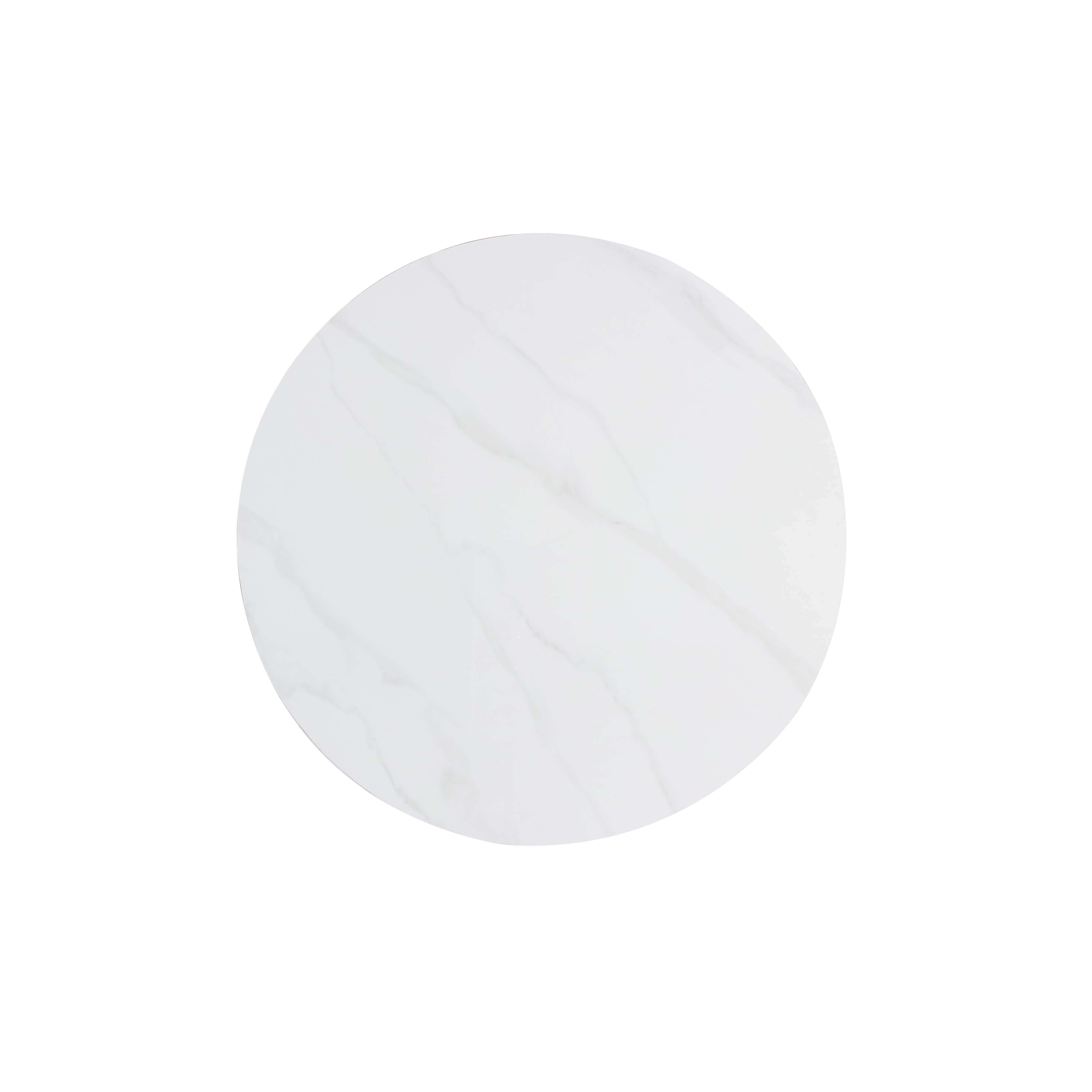 Experience the epitome of modern elegance with the Glenn Collection. Its sleek round gold stainless steel base and lustrous sintered stone tops effortlessly elevate any space, while the ingenious design allows the end table to slide above the coffee table for a captivating layered effect. Whether acquired together or separately, the Glenn Collection offers a timeless fusion of style and versatility, transforming your living space into a realm of contemporary sophistication.- Modern Coffee Table and End Table Set for Living Room Use.