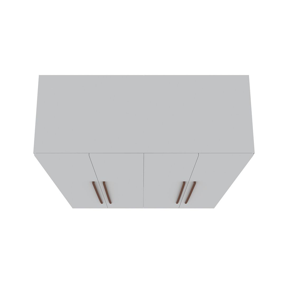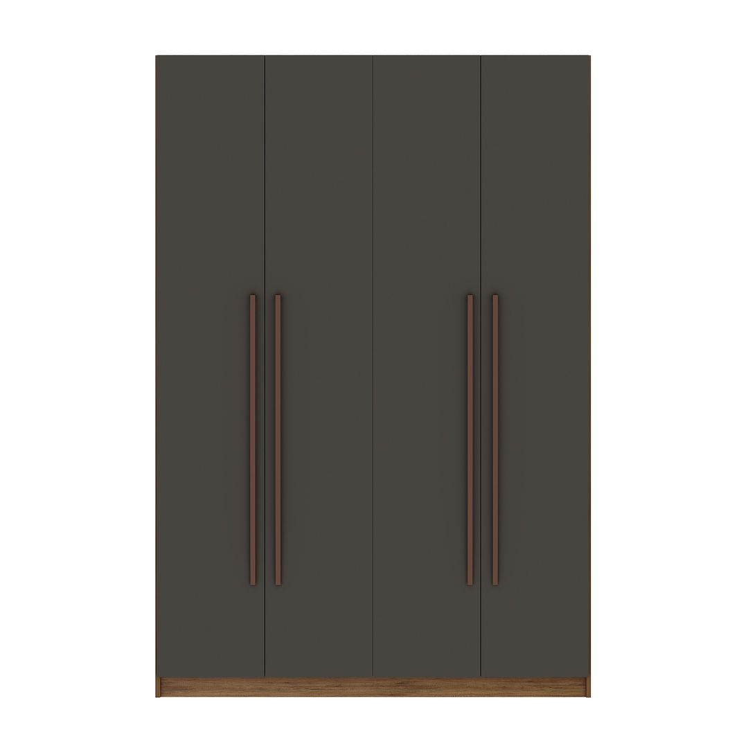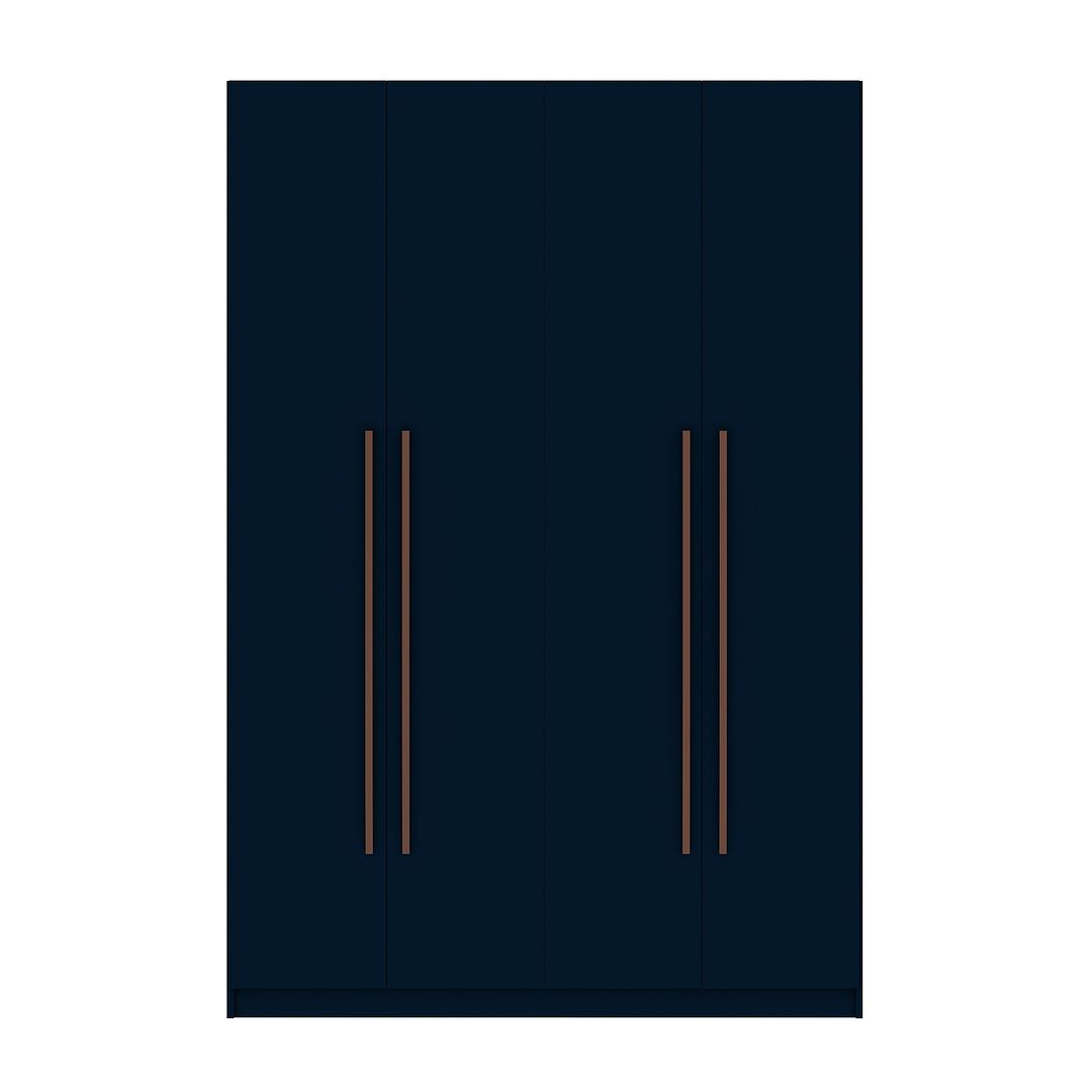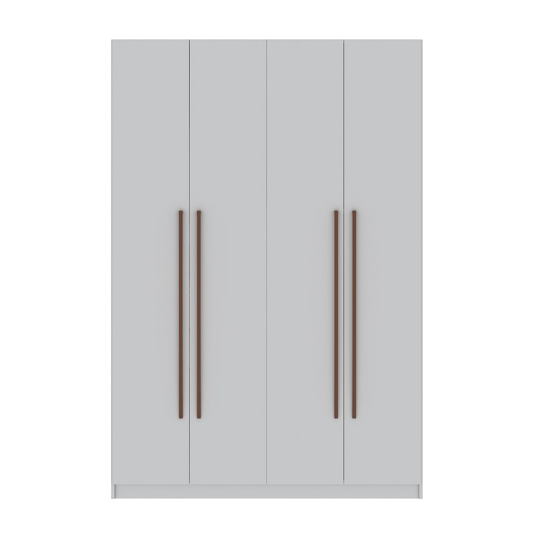 - 2- Sectional Wardrobe Includes 4 Fixed Shelves, 2 Aluminum Hanging Rods, and 2 Drawers.