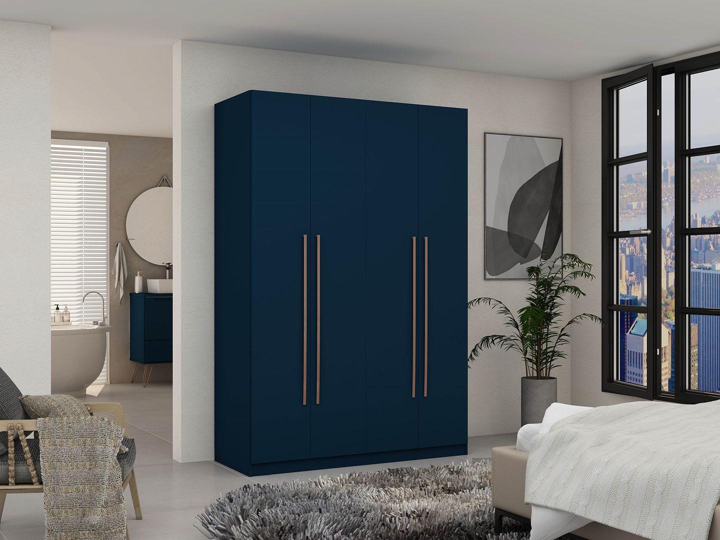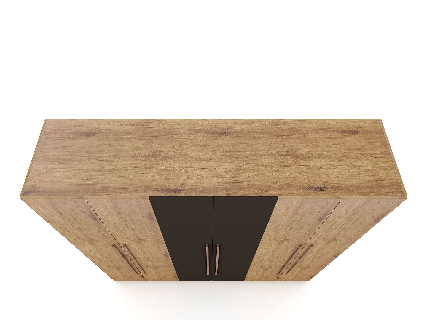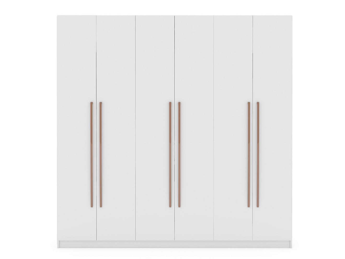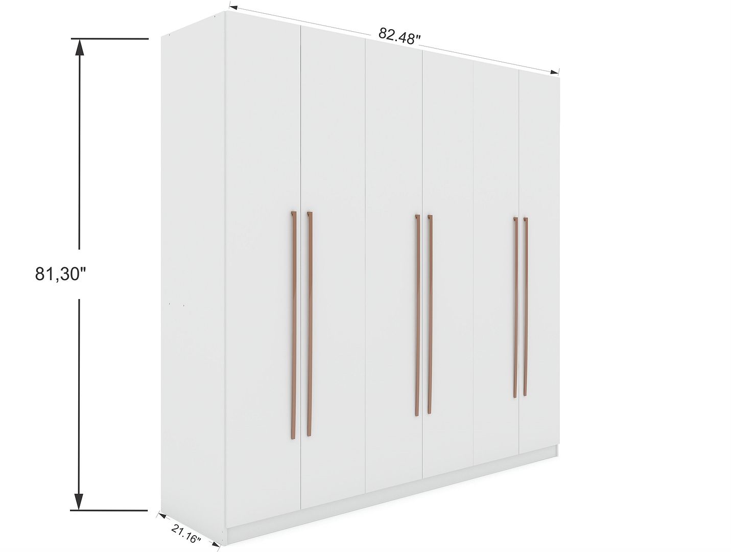 - 2- Sectional Wardrobe Includes 4 Fixed Shelves, 2 Aluminum Hanging Rods, and 2 Drawers.