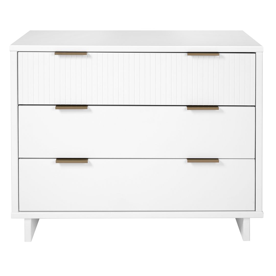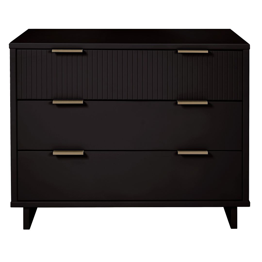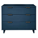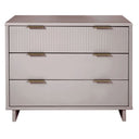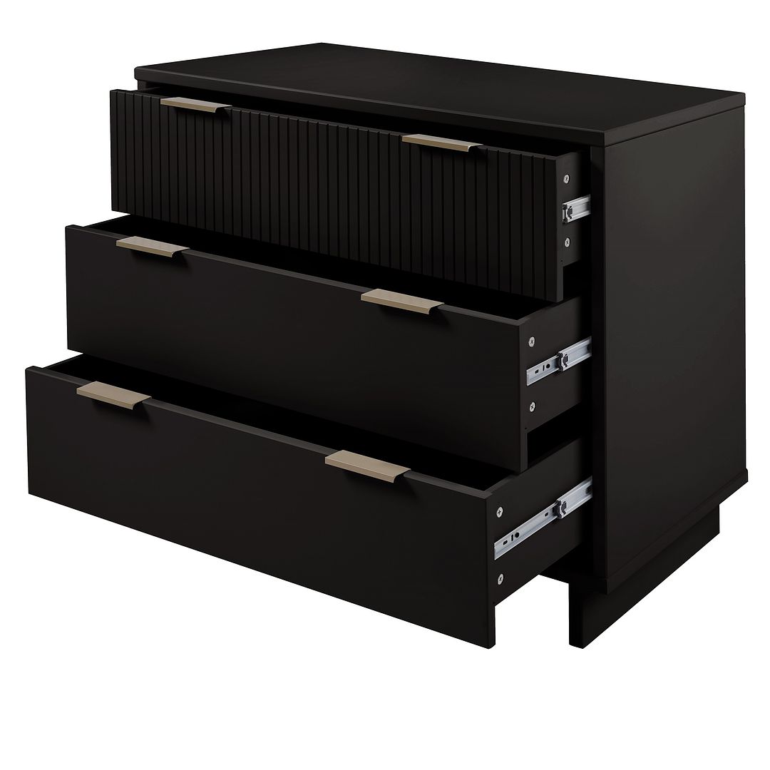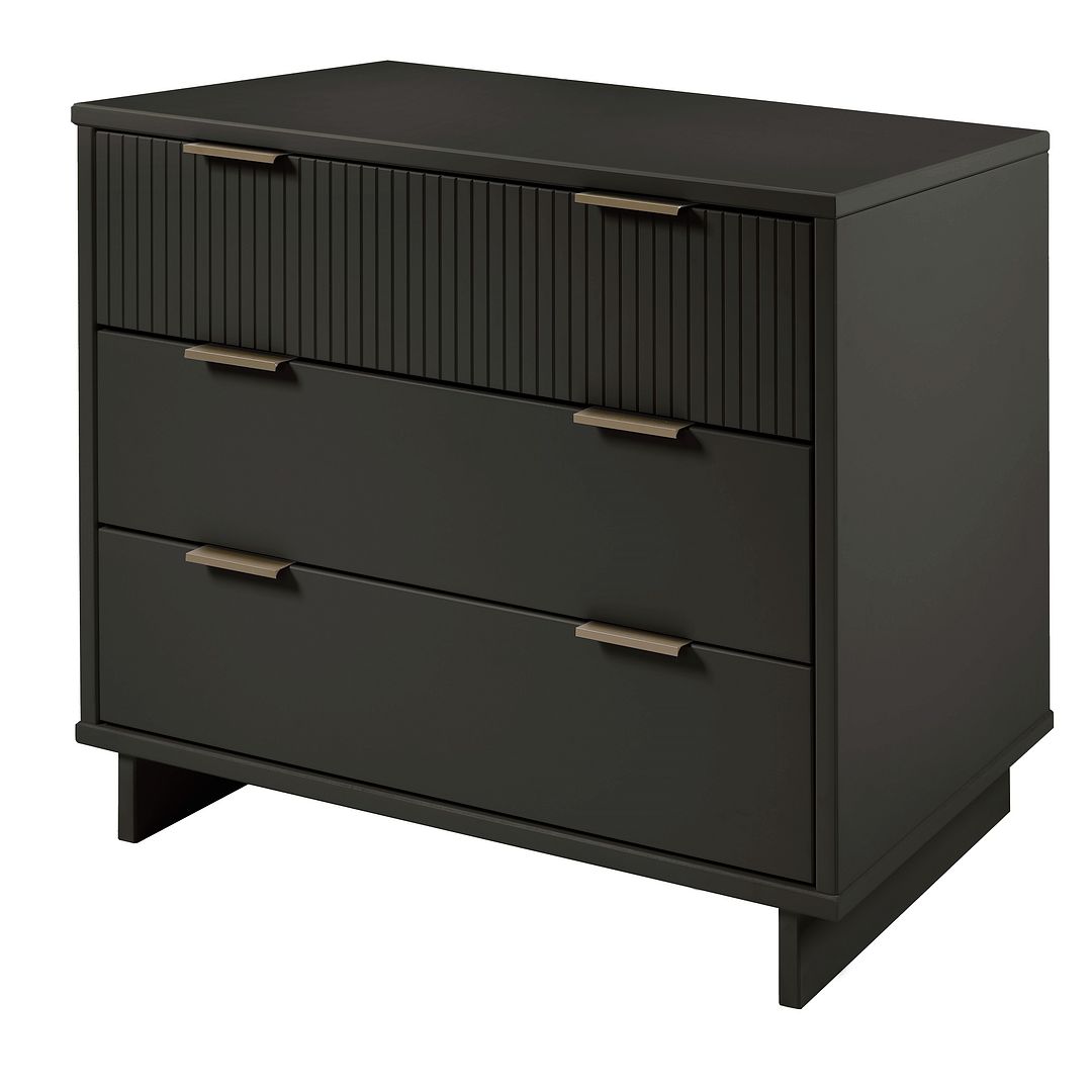 - Includes 3 Full Extension Drawers with Top Drawer Designed in Vertical Textured Ribbed Lines Made from Solid Wood.