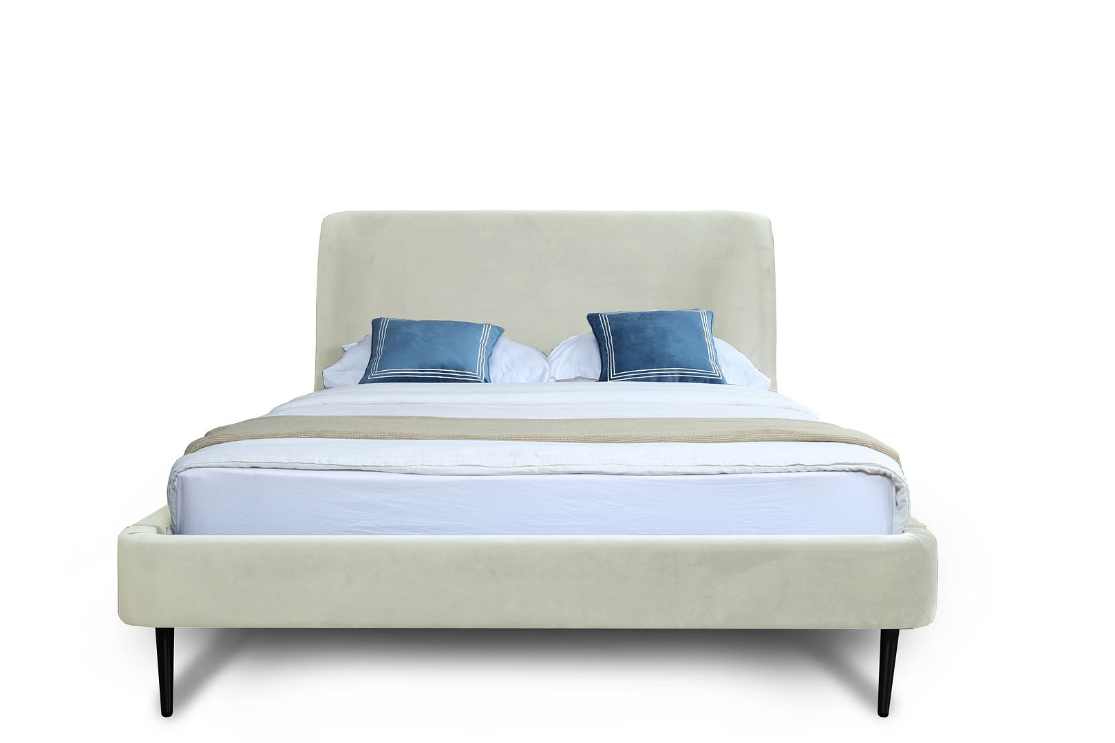 - Mid-Century Modern Bedframe with Headboard for Bedroom Use.