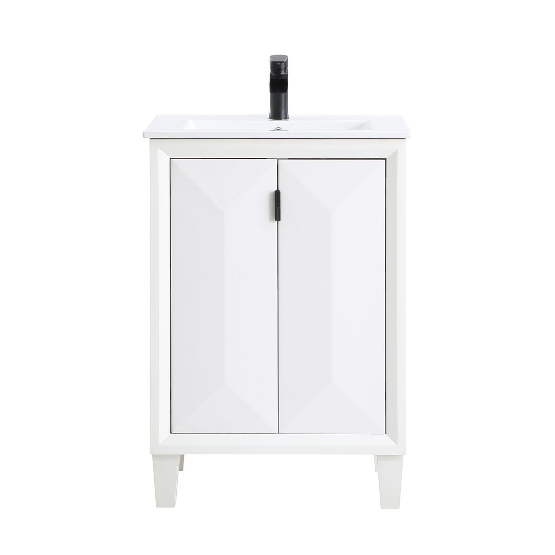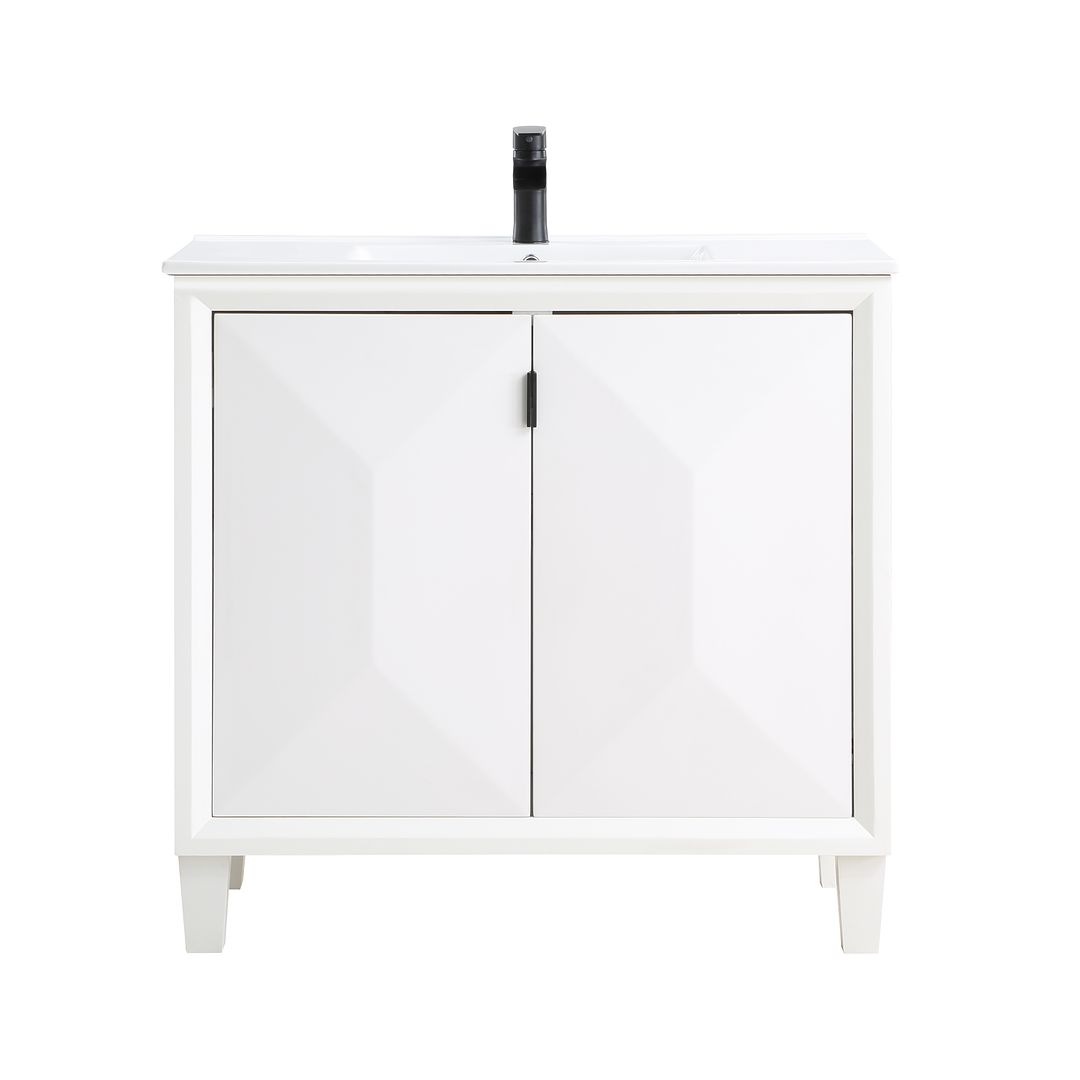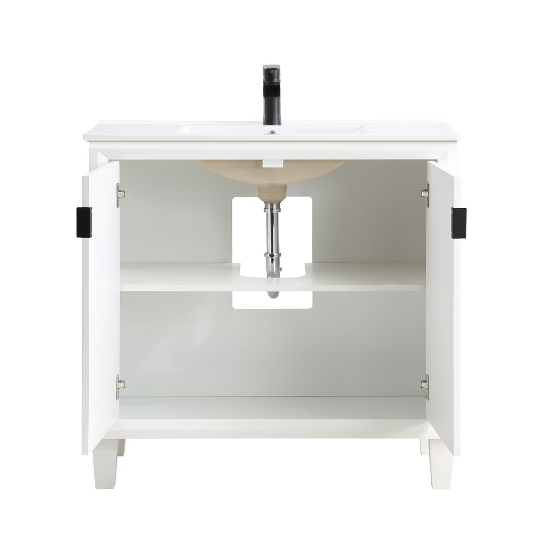 - Features 3D Geometric Soft Close Doors with Metal Handles, and 1 Inner Shelf Perfect for Towels and Bathroom Storage.